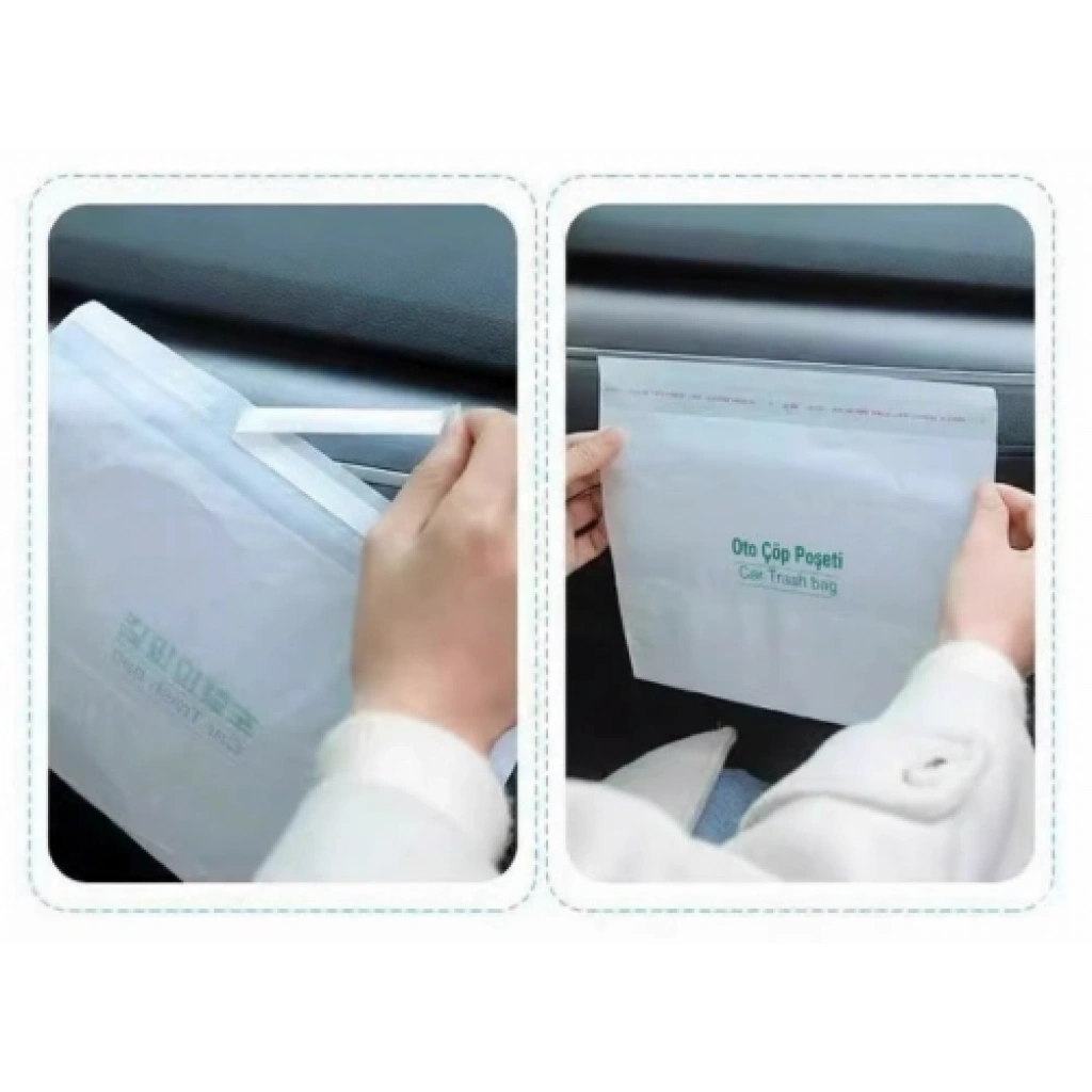 Pakette 20 adet tek kullanımlık çöp poşeti Su geçirmez materyal ile sıvı sızıntılarına karşı koruma Kendinden yapışkanlı bant sayesinde kolay montaj (kapı içi, torpido gözü, koltuk arkası vb.) Ölçü: 23 x 18.5 cm Tek kullanımlık; hijyen ve pratik kullanım sağlarPaket İçeriği: 20 adet su geçirmez oto araba çöp poşeti