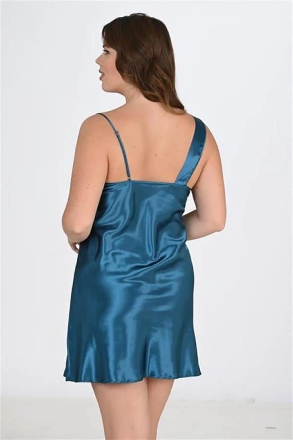 VipMarketim Premium Büyük Beden Saten Petrol 2'Li Gecelik Sabahlık Takımı Bigsize