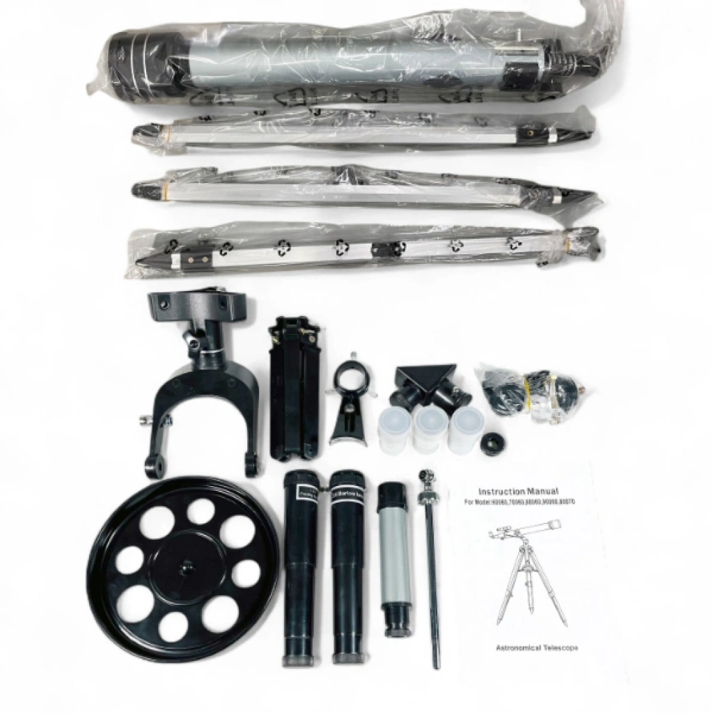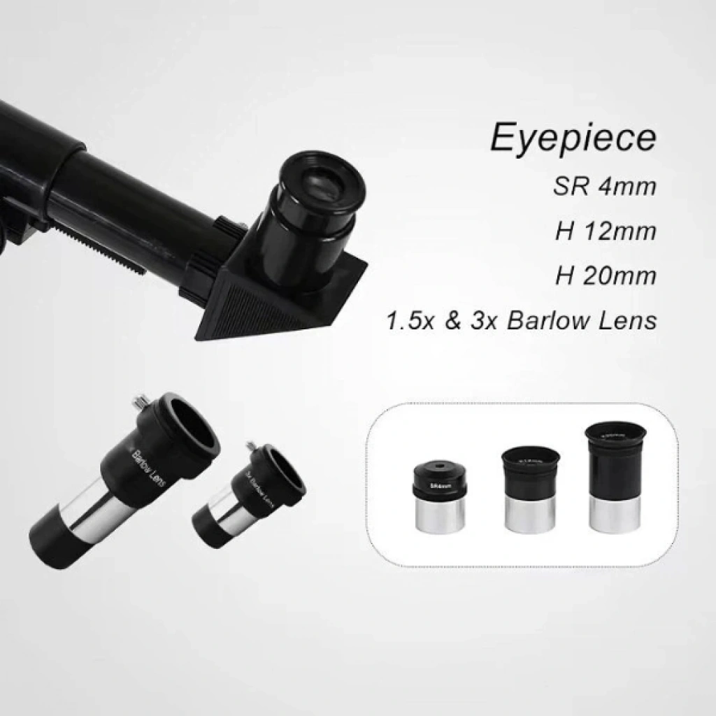 Profesyonel astronomi gözlem teleskopu, uzay meraklıları için ideal bir gözlem aracıdır. Refraktör tasarımı sayesinde net ve detaylı görüntüler sunar. 60 mm objektif lens ve 700 mm odak uzaklığı ile ay, yıldızlar ve gezegenlerin ayrıntılarını yakından inceleyebilirsiniz. H6 mm, H10 mm ve H25 mm göz mercekleriyle farklı büyütme seviyelerinde gözlem yapabilir, ayrıca 1.5x ve 3x barlow lens sayesinde büyütme gücünüzü artırabilirsiniz. 90° zenith aynası ile rahat bir gözlem imkânı sağlarken, 5x24 dürbün tipi finderscope hedefleri kolayca bulmanıza yardımcı olur. 2 kademeli uzun tripod ile sağlam bir kullanım sunar. Eğitim, hobi ve profesyonel gözlemler için kullanışlı bir üründür. Paket İçeriği1 adet Profesyonel Astronomi Gözlem Teleskopu