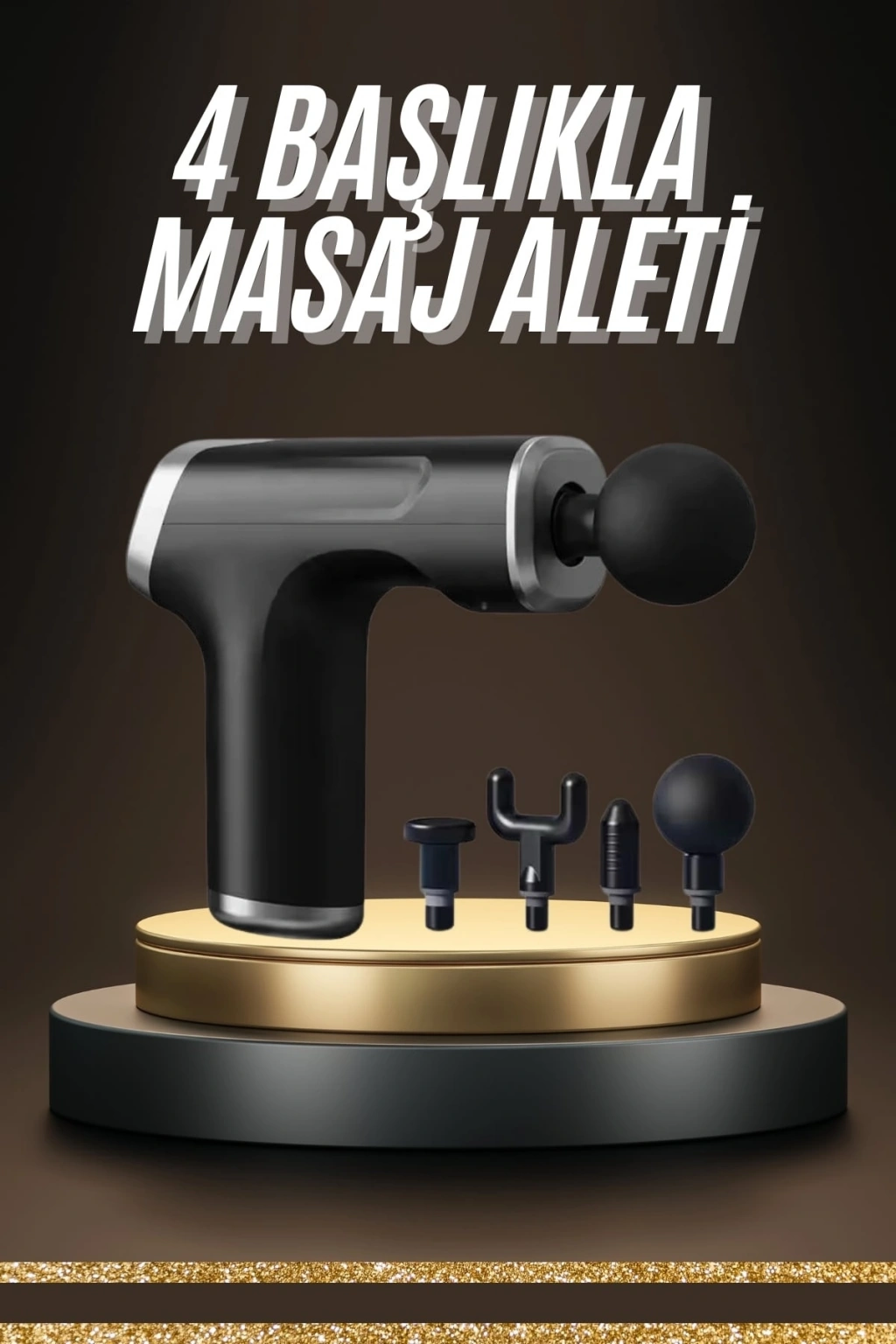 VipMarketim Profesyonel Masaj Tabancası Sporcu Masaj Aleti 4 Başlıklı Şarjlı Titreşimli