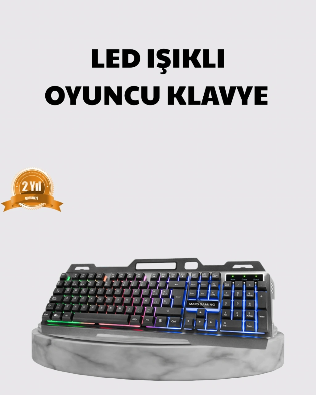Uzun oyun maratonlarına hazır olun! Profesyonel RGB Işıklı Klavye-Mouse Seti, dayanıklılığı ve hassas tepkime süresiyle her oyuncunun vazgeçilmezi olmaya aday.Klavye, Türkçe Q tuş dizilimi ve RGB ışıklandırma sistemi ile karanlık ortamlarda bile rahat kullanım sağlar.Renkli arka aydınlatma, oyun atmosferini güçlendirirken kişisel tarzınızı da yansıtır.Dayanıklı tuş mekanizması, milyonlarca tıklama ömrüyle uzun süreli kullanım sağlar.Multimedya kısayol tuşları, oyun esnasında dahi ses kontrolü veya medya geçişlerini kolaylaştırır.Mouse, yüksek hassasiyetli optik sensörü ve ayarlanabilir DPI değerleri (800-1600-2400-3200) sayesinde farklı oyun türlerinde mükemmel performans gösterir.Ergonomik yapısı, elinize tam oturur ve uzun süreli kullanımlarda bile ağrı veya yorgunluk hissini en aza indirir.USB bağlantısı ile kablosuz gecikme yaşamadan hızlı tepki verir; bu sayede her tuş darbesi oyuna anında yansır.Dayanıklı gövde yapısı, zorlu oyun koşullarına karşı ekstra direnç sunar.İster profesyonel bir gamer olun ister günlük kullanıcı, RGB Işıklı Oyuncu Klavye-Mouse Seti, hız, konfor ve performansı aynı anda sunar.