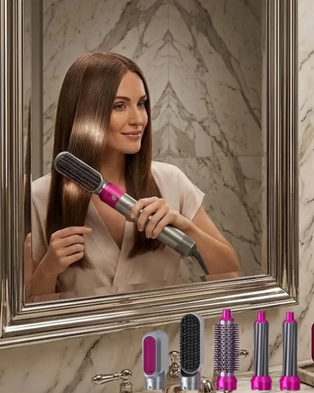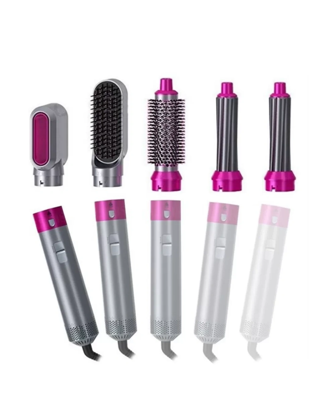 Çok yönlü kullanım sunan 5 parçalı saç şekillendirici set, saç şekillendirme ihtiyaçlarını tek bir üründe toplayarak kullanıcıya maksimum konfor sağlar. Farklı başlık seçenekleri sayesinde saçınıza istediğiniz şekli verebilir, her gün farklı bir stil oluşturabilirsiniz.Yüksek performanslı motoru ve 1000W gücü sayesinde kısa sürede ısınarak etkili sonuçlar sunar. Özellikle hızlı hazırlanması gereken durumlarda büyük kolaylık sağlar. 4 farklı ısı ayarı ile saç tipinize uygun sıcaklık seçimi yapabilir, saçınızı koruyarak şekillendirme işlemini gerçekleştirebilirsiniz.Cihazın döner kablo özelliği kullanım sırasında kablonun dolaşmasını engeller ve rahat hareket etmenizi sağlar. Ergonomik tasarımı sayesinde elde kayma yapmaz ve kullanım sırasında maksimum kontrol sunar.Aşırı ısınma koruması ile güvenli kullanım sağlayan cihaz, uzun süreli kullanımda bile performansını korur. Bu özellik hem cihazın ömrünü uzatır hem de kullanıcı güvenliğini artırır.Set içerisinde bulunan başlıklar sayesinde farklı saç stilleri oluşturabilirsiniz. Hacimli saçlar, doğal dalgalar veya düz görünümler elde etmek artık çok daha kolay. Özellikle evde profesyonel sonuç almak isteyen kullanıcılar için ideal bir tercihtir.Modern ve pratik tasarımı ile dikkat çeken bu ürün, günlük kullanım için uygundur. Hem zamandan tasarruf sağlar hem de kuaför maliyetlerini azaltır.