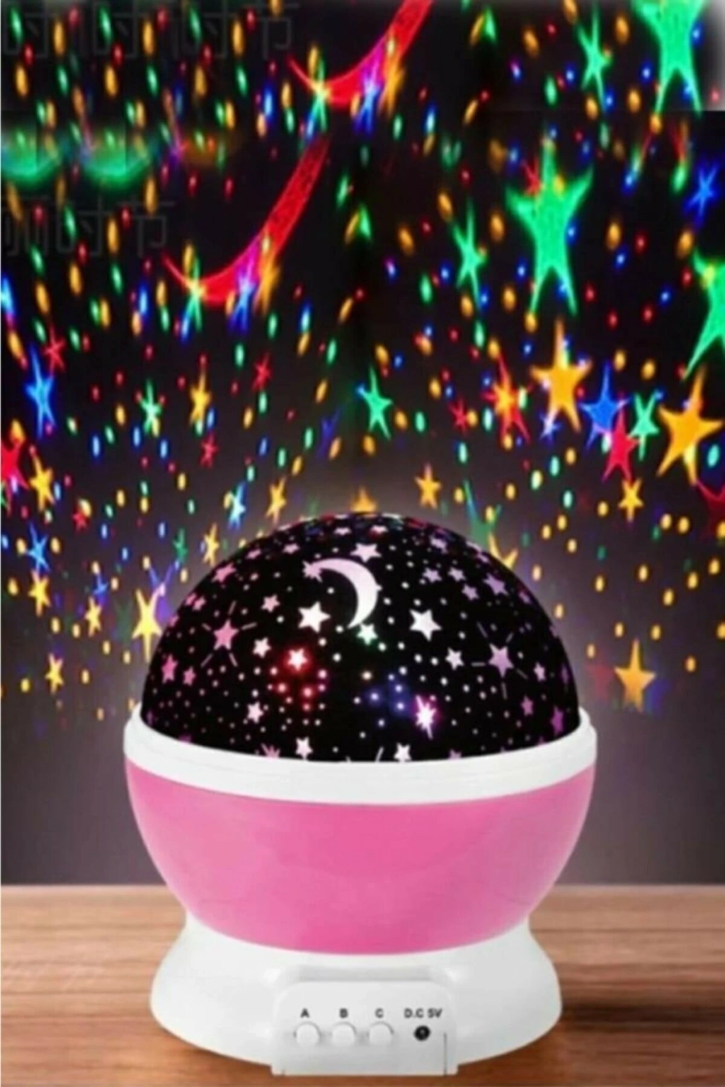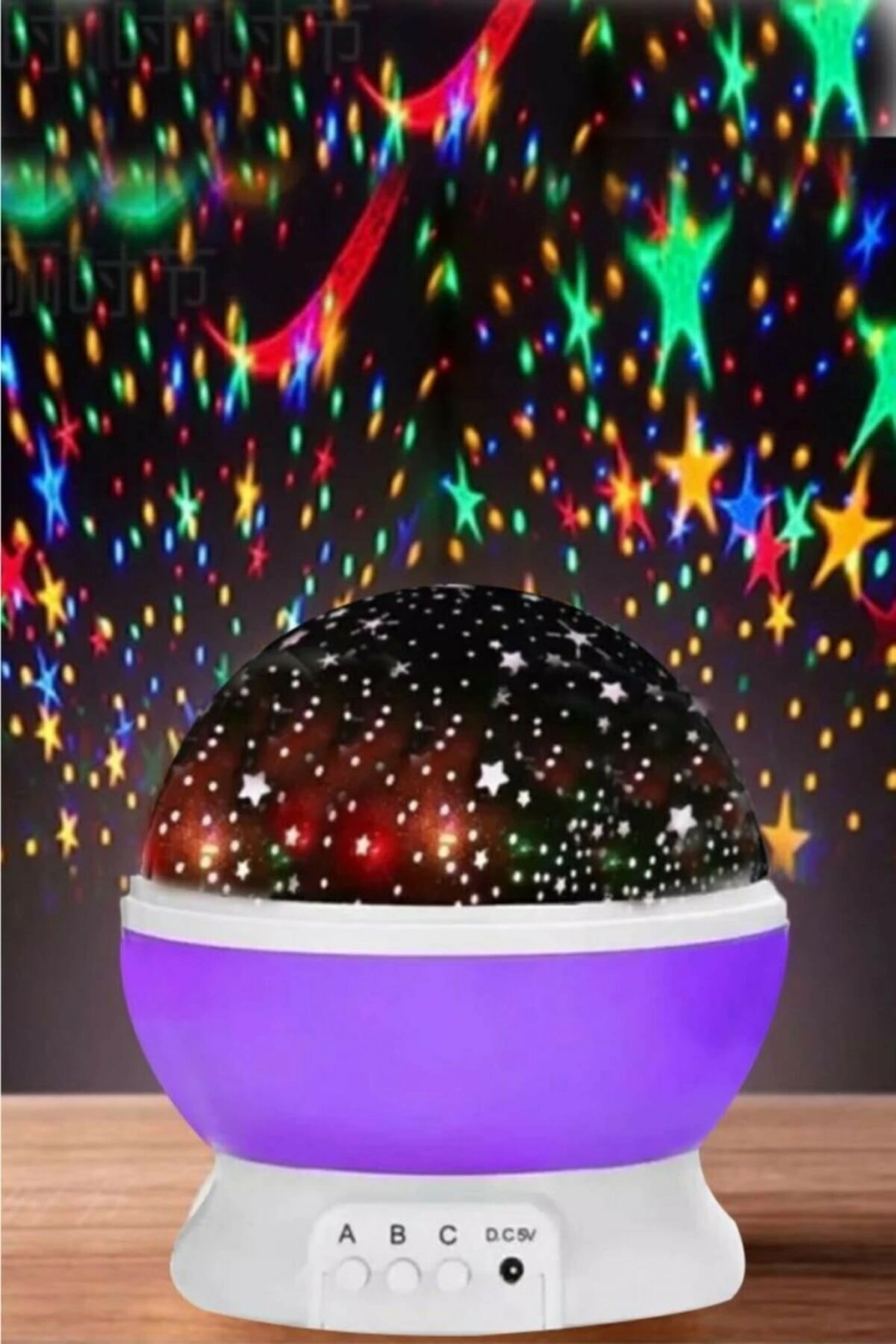 Çok renkli yanan ve dönebilen başlıklı star master projektör gece lambası ile siz de çocuğunuzun (ya da içindeki çocuğu öldürmeyen büyüklerin) odalarını aydınlatma dönme özelliği mevcuttur. Ister dönsün ister sabit dursun yansıtması tüm odayı kapsar, loş bir ortam oluşur. Biri gün ışığı rente yansıtır, ikincisi renkli ışık yansıtır. Her bastığınızda renk değiştirir. Üçüncü tuş dönme özelliğini açıp kapatır. Renkli yansıtma tuşu 8 farklı ışık modunda yansıtmaktadır. Kalem pille çalışmaktadır Çocuklarınızın uyumasını kolaylaştırır. Döner yapısı sayesinde odanızı aydınlatır. 3 adet AA pil veya içerisinde bulunan USB kablo ile çalışır. Açma kapama butonu bulunmaktadır. PİLLER DAHİL DEĞİLDİR!