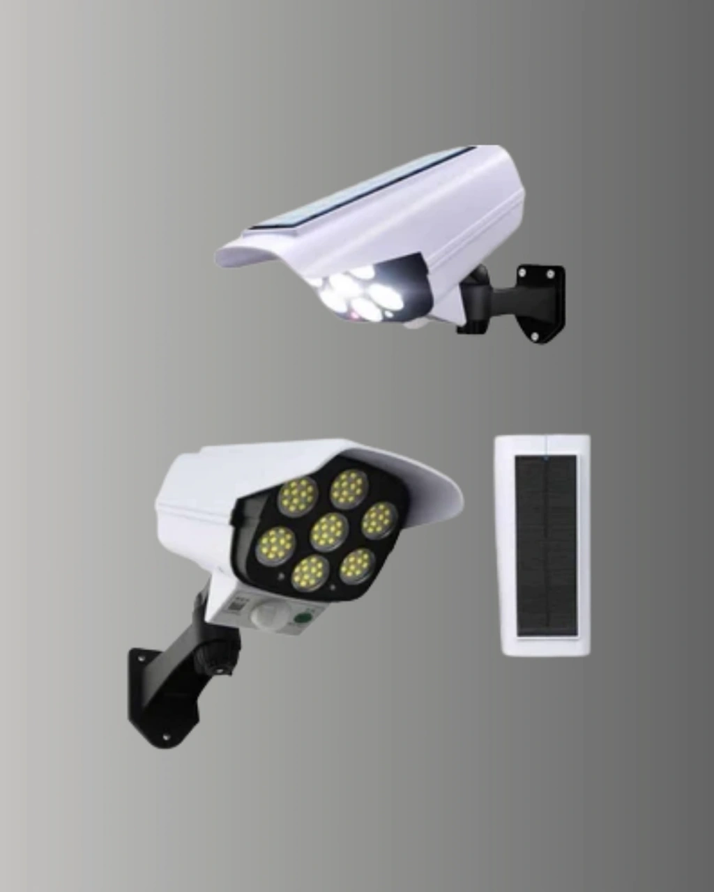 Şık ve modern tasarımıyla dikkat çeken bu dış mekân lambası, gerçekçi görünümlü bir kamera ve parlak LED ışık kombinasyonunu bir araya getirir. Güneş paneli 5,5V / 300mA kapasiteyle gün boyunca ışığı depolar, dahili 2400mAh pil ile akşamları uzun süreli ışık sağlar. 77 adet LED ampulüyle geniş bir alanı aydınlatabilir.3 farklı ışık modu sayesinde kullanım alanınıza göre özelleştirebilirsiniz. PIR hareket sensörü 5-8 metre mesafede ve 120° açıda hareket algıladığında ışığı otomatik olarak devreye alır. Sensör, hareket algılandıktan sonra ışığı 20 saniye açık tutar.PVC ve PC malzemeden üretilmiş olan gövde, hafif (431 g) ve montajı kolaydır. Ayarlanabilir güneş paneli ve lamba başlığı, optimum güneş alma ve aydınlatma açısı sağlar. IP65 su geçirmez yapısı sayesinde yağmur ve dış etkenlerden etkilenmeden kullanılabilir.