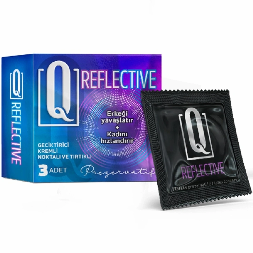 Q REFLECTIVE ergonomik yapısı sayesinde daha rahat. Geciktirici kremi sayesinde hissiyatı azaltmadan erkeği geciktirir. Ekstra kayganlaştırıcılı, noktalı ve tırtıklı dış yüzeyi sayesinde kadını hızlandırır.- 180mm uzunluk.- 52mm genişlik.- Kadını hızlandıran tırtıklı ve noktalı, erkeği yavaşlatan geciktirici kremli.- Kayganlaştırıcılı- %5 oranında Benzocaine içerir.