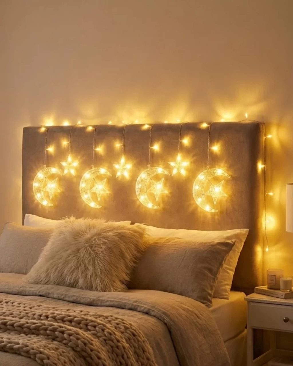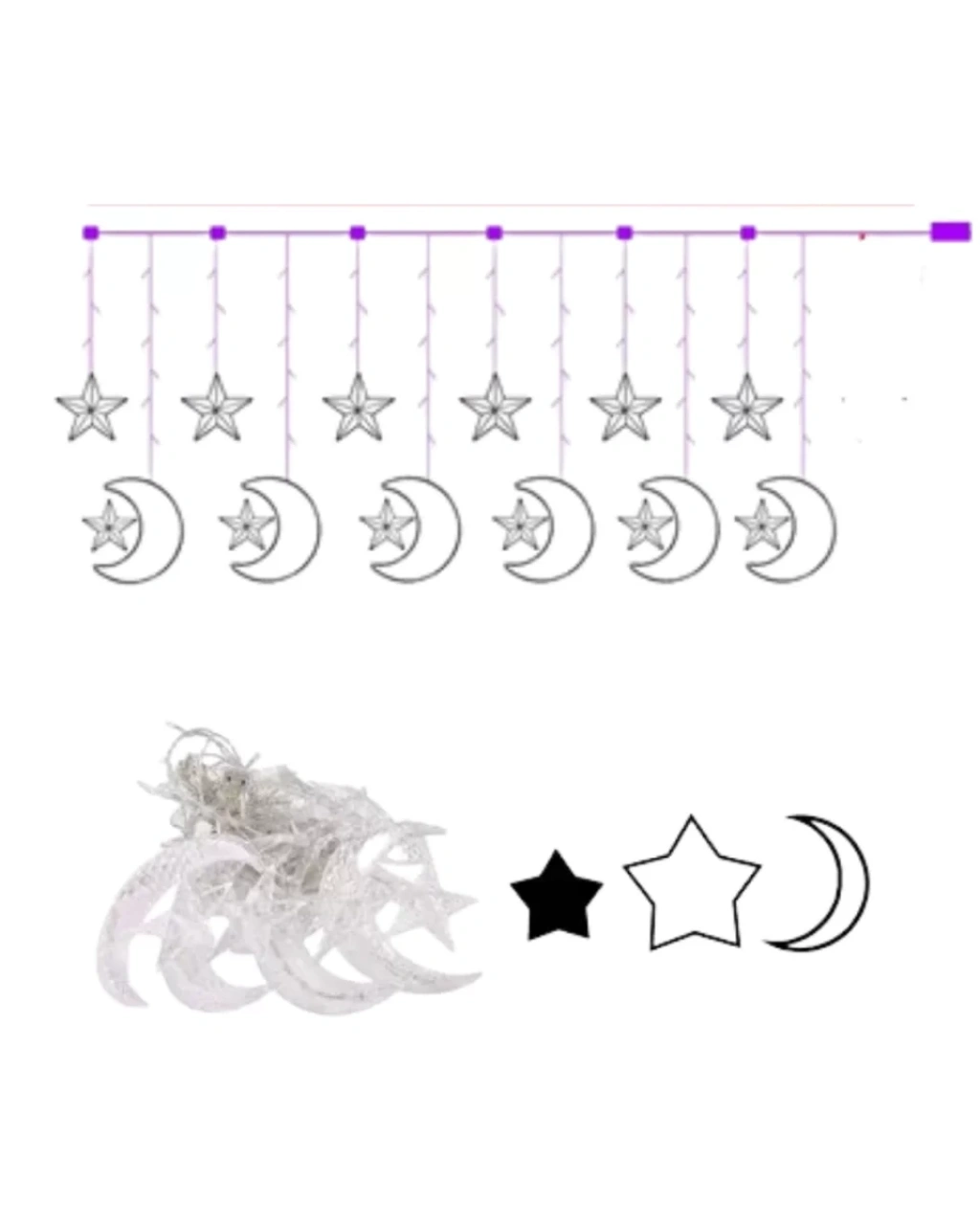 Bu dekoratif hilal ve yıldız perde aydınlatma sistemi, Ramazan, bayram, düğün, nişan, doğum günü ve parti organizasyonları için ideal bir süsleme çözümüdür. Mekâna kattığı sıcak sarı ışık tonu sayesinde hem samimi hem de zarif bir atmosfer oluşturur.İki farklı ışık modu sayesinde ortamın konseptine uygun bir görünüm elde edebilirsiniz. Sabit ışık modu daha klasik ve şık bir ambiyans yaratırken, yanıp sönen mod eğlenceli ve dikkat çekici bir etki oluşturur. Bu özellik, ürünü çok yönlü bir dekorasyon ürünü haline getirir.Dayanıklı plastik figürler ve kaliteli PVC kablo tasarımı uzun ömürlü kullanım sağlar. Güvenli yapısı sayesinde iç mekân kullanımında rahatlıkla tercih edilebilir. Kablo yapısı korumalıdır ve güvenlik ön planda tutularak tasarlanmıştır.Perde önünde, arka plan dekoru olarak, masa arkası süslemede ya da vitrin tasarımında rahatlıkla kullanılabilir. Işık yandığında hilal ve yıldız figürleri daha belirgin hale gelir ve bulunduğu ortama estetik bir derinlik kazandırır.