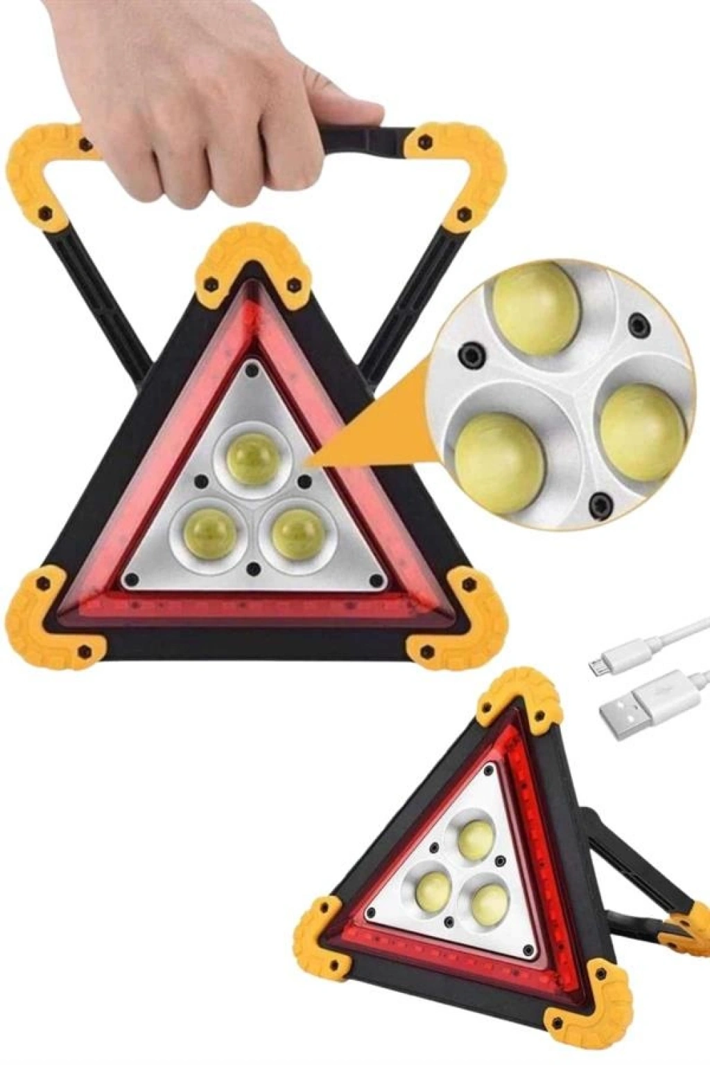 Güneş Enerjili Çok Amaçlı Işıklı İkaz Lambası – Her Ortamda Güvenli AydınlatmaŞarjlı ve güneş enerjili bu çok amaçlı ikaz lambası, doğa sporlarından tamirata, denizden karavancılığa kadar her alanda ihtiyaç duyduğunuz aydınlatmayı güvenli ve pratik bir şekilde sağlar. Arka tarafında yer alan güneş paneli, gün ışığını enerjiye çevirerek cihazın şarj edilmesini mümkün kılar. Böylece elektrik bulunmayan ortamlarda bile kesintisiz ışık sağlamaya devam eder.USB kablo ile şarj edilebilme özelliği, kullanıcıya ekstra esneklik sunar. Ürünle birlikte gelen kablo sayesinde isterseniz elektrikle, isterseniz güneşle kolayca enerji sağlayabilirsiniz. Kompakt tasarımıyla çantada, araçta ya da el altında rahatça taşınabilir. Açıldığında 5 cm genişlik, 24 cm boy ve 27 cm yükseklik ölçülerine ulaşır.500 lumen COB ışık gücü ile güçlü bir aydınlatma sağlayan lamba, farklı ışık modlarıyla birçok farklı kullanım senaryosuna cevap verir.İlk dokunuş: Güçlü beyaz COB ışıkİkinci dokunuş: Zayıf COB ışıkÜçüncü dokunuş: Sabit kırmızı uyarı ışığıDördüncü dokunuş: Yanıp sönen kırmızı uyarı ışığıBeşinci dokunuş: Kısa dalgalı kırmızı uyarıAltıncı dokunuş: KapatmaKullanım Alanları:Dağcılık, balıkçılık, kampçılık, madencilik gibi doğa ve iş aktiviteleri için uygundur. Ayrıca bisiklet, motosiklet, tekne, karavan ve araba gibi araçlarda ikaz lambası olarak da kullanılabilir. Çadırda gece görüşü sağlamak, acil durum sinyali vermek ya da tamir anlarında net aydınlatma sağlamak için idealdir.Dayanıklı yapısı, çok yönlü ışık seçenekleri ve enerji tasarrufu sağlayan güneş paneli ile bu çok amaçlı reflektör, hem güvenliğinizi artırır hem de enerji verimliliği sağlar. Açık hava tutkunlarının ve profesyonellerin çantasında mutlaka bulunması gereken bir üründür.