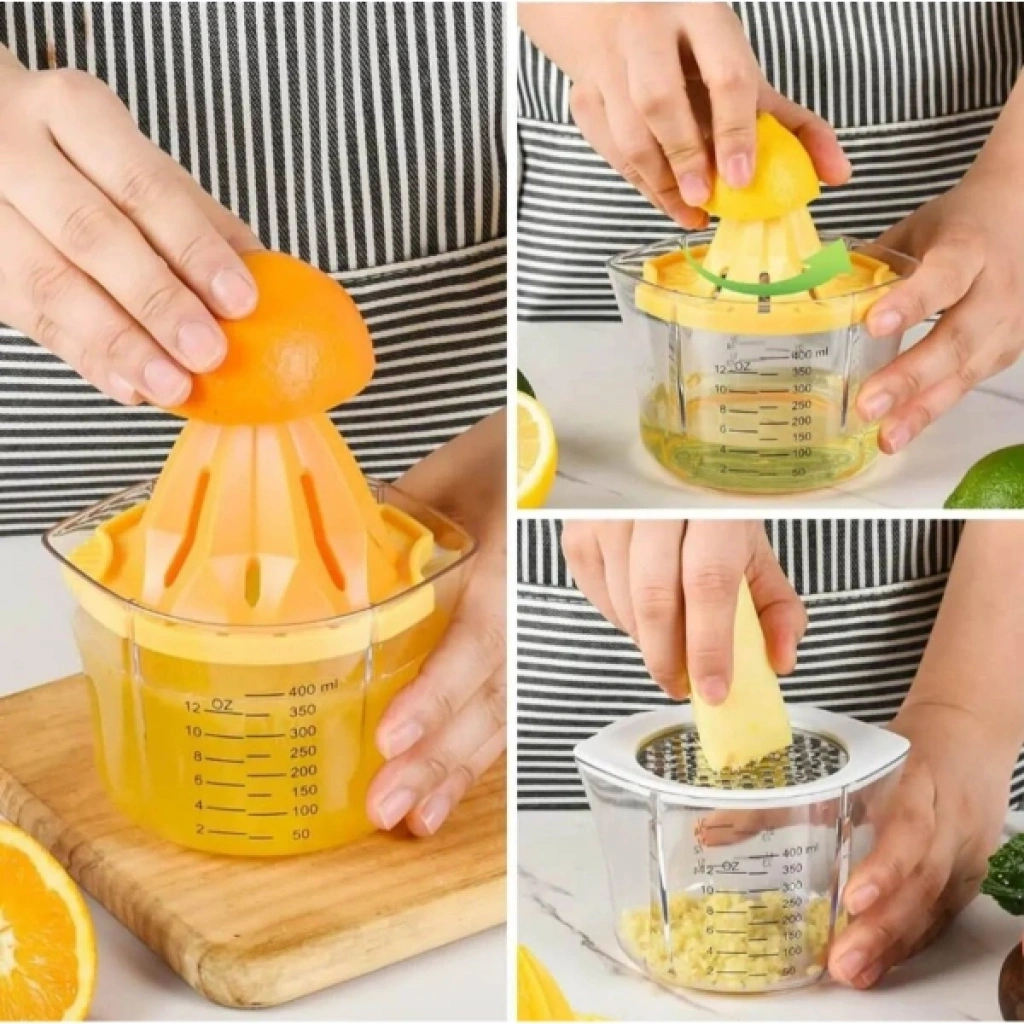 Rendeli narenciye sıkacağı, çok fonksiyonlu tasarımıyla mutfakta büyük kolaylık sağlar. 4'ü 1 arada kullanım sunan bu pratik ürün; meyve suyu sıkacağı, rende, ölçü kabı ve süzgeç işlevlerini bir araya getirerek mutfakta zaman kazandırır. Sağlam plastik gövdesi ve paslanmaz çelik rende başlığı sayesinde uzun ömürlüdür. Limon, portakal, greyfurt gibi narenciyeleri zahmetsizce sıkmanızı sağlayan ergonomik yapısı ile kullanım kolaylığı sunar. Şeffaf haznesi üzerindeki ölçü göstergesi sayesinde sıktığınız meyve suyunun miktarını rahatlıkla takip edebilirsiniz. Süzgeç özelliği sayesinde meyve suyunuz posasız ve çekirdeksiz olarak elde edilir. Hafif ve kompakt tasarımı sayesinde evde, ofiste ya da seyahatlerde rahatlıkla taşınabilir ve kullanılabilir. Kolay temizlenebilir yapısı ile hijyenik kullanım sunar.Paket İçeriği1 Adet Rendeli Narenciye Sıkacağı