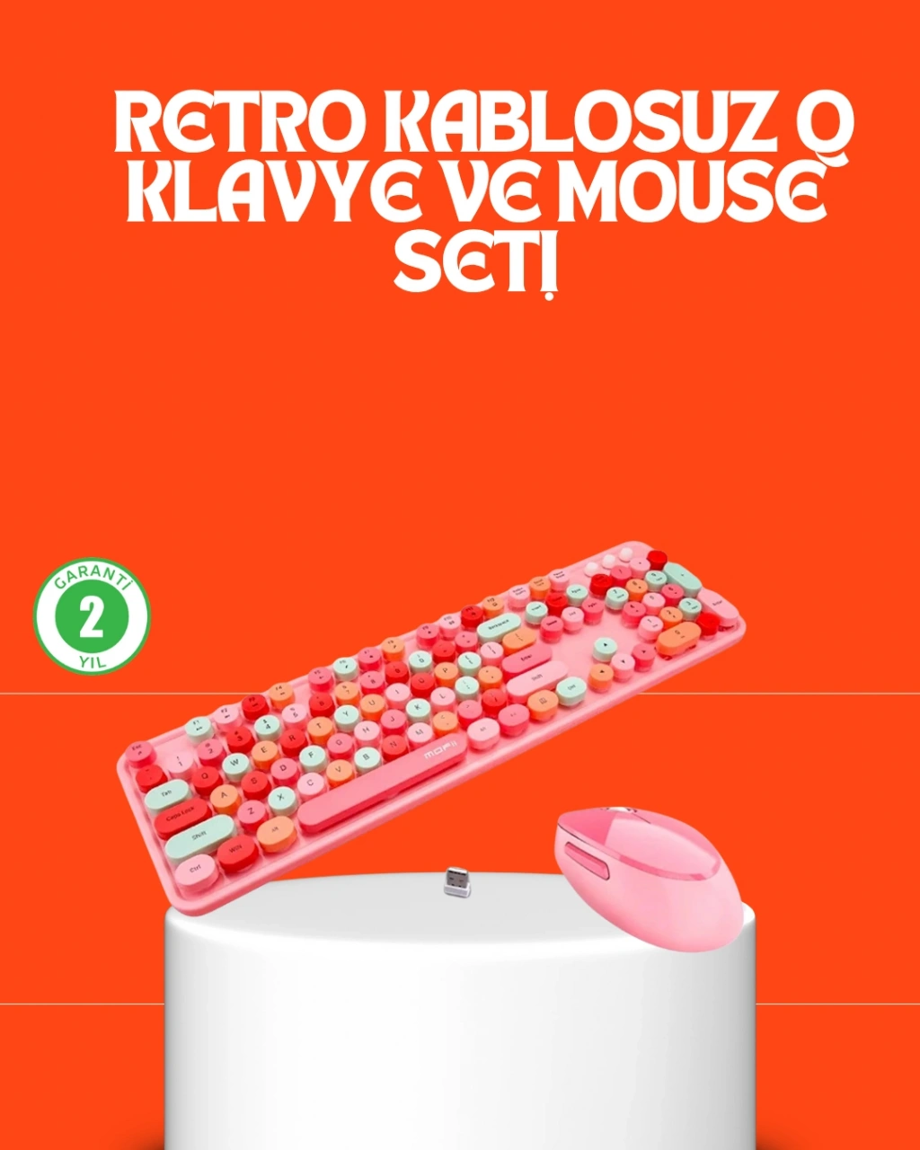 Retro görünümüyle dikkat çeken bu Bluetooth klavye, klasik daktilo hissini modern teknolojiyle buluşturuyor. Yuvarlak tuş başlıkları sadece estetik değil, aynı zamanda ergonomik bir yazma deneyimi sağlar. Gelişmiş Bluetooth 5.1 bağlantısı, gecikme olmadan yazmanıza olanak tanır. USB alıcısı sayesinde kablosuz kullanımda istikrar sunar. Akıllı enerji tasarrufu teknolojisi, kullanılmadığında otomatik olarak uyku moduna geçerek pil ömrünü uzatır. 2 adet AAA pil ile yaklaşık 6 ay kullanılabilir. Tuşlar sessizdir; bu sayede ofiste veya evde çevrenizdekileri rahatsız etmeden çalışabilirsiniz. Windows, macOS, iOS ve Android cihazlarla tam uyumludur. Kompakt yapısı masa düzenini sadeleştirirken, zarif renk kombinasyonlarıyla dekoratif bir dokunuş katar. Estetik, sessizlik ve dayanıklılık bir arada!