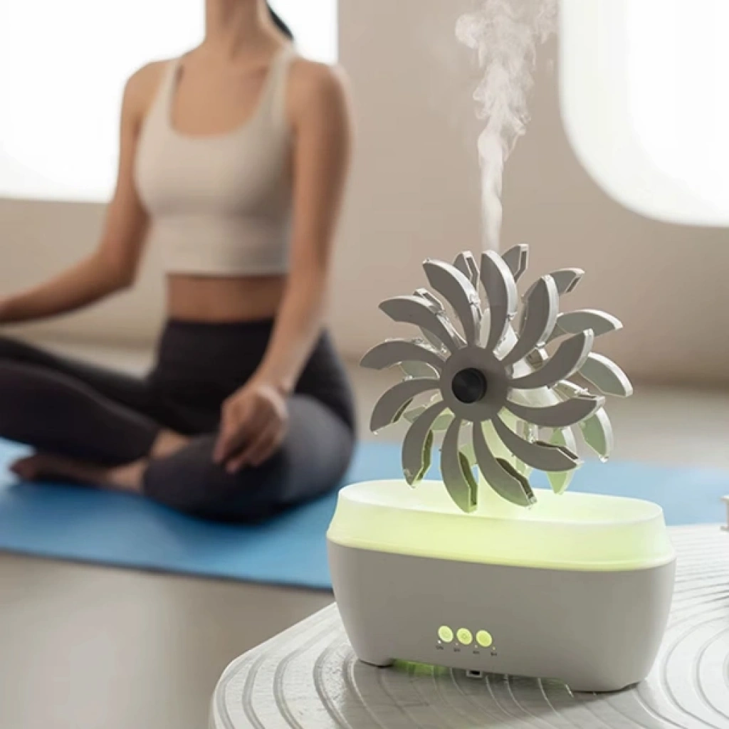 Rüzgar değirmeni tasarımlı hava nemlendirici 300 ml su haznesiyle ortama ideal nem dengesini sağlar. Uzaktan kumandası sayesinde kolayca kontrol edilebilir ve RGB ışık fonksiyonlarıyla farklı renklerde hoş bir ambiyans yaratır. Aromatik yağlarla kullanılabilen cihaz, bulunduğu ortama ferahlık ve hoş koku katar. Üst kısmındaki dekoratif değirmen yavaşça hareket ederek görsel bir şıklık sunar. Sessiz çalışmasıyla uyku sırasında veya çalışma ortamında rahatsızlık vermez, aynı zamanda dekoratif tasarımıyla ev ve ofislerde modern bir görünüm sağlar. Paket İçeriği1 adet Rüzgar Değirmeni Hava Nemlendirici