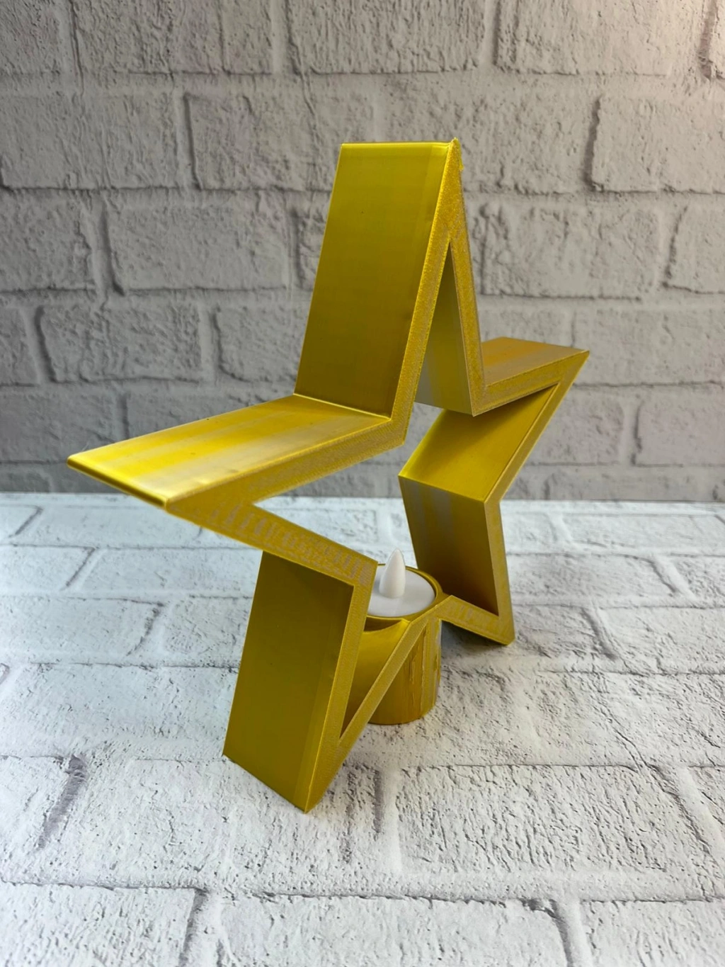 Sarı yıldız mumluk, canlı rengi ve modern tasarımıyla dekorasyona enerjik bir dokunuş katar. 21×23 cm ölçüsü sayesinde raf, masa, şifonyer veya TV ünitesi üzerinde rahatlıkla sergilenebilir. Mum ışığıyla birleştiğinde loş ve sıcak bir atmosfer oluşturarak salon ve oturma alanlarında samimi bir ambiyans yaratır. Hem tek başına hem de diğer dekoratif objelerle birlikte kullanılabilir.