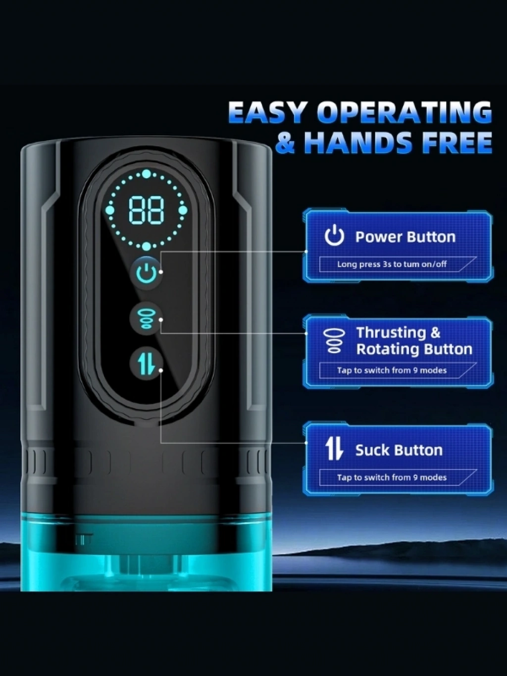 Bu 3 in 1 otomatik mastürbatör, erkekler için tasarlanmış ileri teknoloji bir zevk cihazıdır. İleri geri hareket, dönme hareketi ve emiş fonksiyonları bir arada sunularak, her kullanımda farklı ve gerçekçi bir deneyim yaşamanızı sağlar. Öne Çıkan Özellikler: 3 Fonksiyon Bir Arada: İleri geri hareket, dönme ve emiş özellikleriyle doğal ve yoğun bir haz deneyimi. İleri Geri Hareket: Hız ve yoğunluğu kişisel tercihinize göre ayarlayabileceğiniz, maksimum uyarım sağlayan hareket teknolojisi. Dönme Hareketi: Dönme ve titreşim kombinasyonu, ekstra heyecan ve gerçekçi his sunar. Emiş Fonksiyonu: Hafif ve güçlü emiş hareketleri ile derinlemesine tatmin sağlar. LCD Ekran ve Dokunmatik Kontrol: Tüm fonksiyonları görsel olarak takip edin ve hız, mod ile emiş gücünü kolayca ayarlayın. Şarjlı Tasarım: USB şarjlı, kablo derdi yok; kısa şarj ile uzun süreli kullanım imkanı. Ergonomik ve Sessiz: Yumuşak silikon malzeme ile cilde dost, vücut ısısına hızlı uyum sağlar ve sessiz çalışır. Su Geçirmez: Duşta veya banyoda güvenle kullanabilir, temizliği kolaydır. Teknik Bilgiler: Mod Sayısı: 15 farklı titreşim ve hareket kombinasyonu Malzeme: Yumuşak, cilt dostu silikon Kontrol: LCD ekran + dokunmatik tuşlar Şarj: USB ile kolay şarj Su Geçirmezlik: IPX7 – duşta ve banyoda kullanım Sessizlik: Gizli kullanım için düşük ses seviyesi Şarjlı İleri Geri ve Dönmeli Emişli Mastürbatör – titreşimli ve otomatik hareketlerle maksimum tatmin ve gerçekçi bir deneyim sunar.
