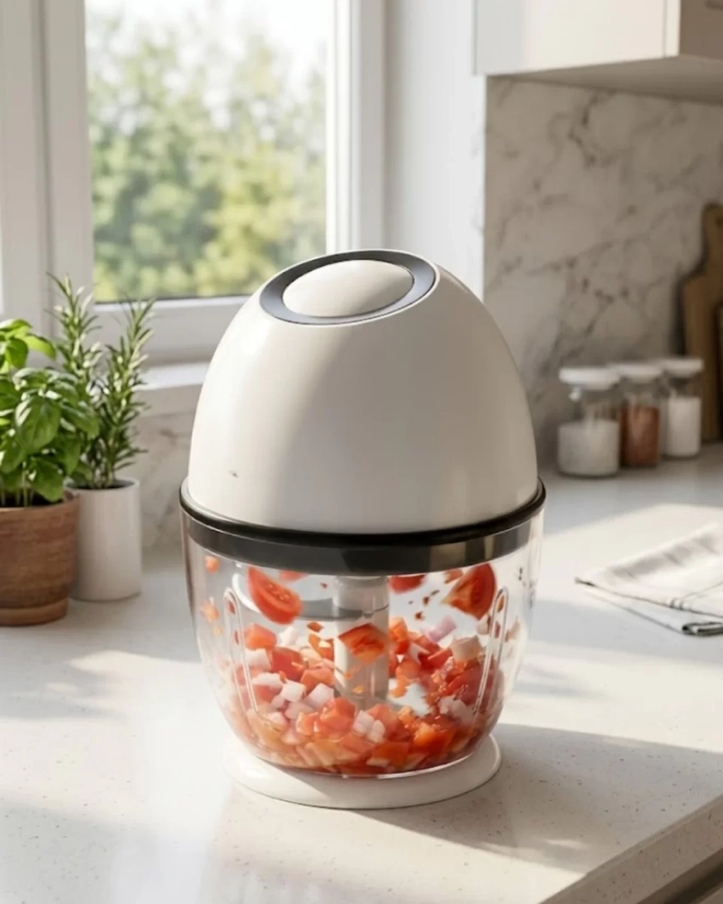 Şarjlı mini doğrayıcı, mutfakta pratik ve hızlı hazırlık yapmak isteyen kullanıcılar için tasarlanmış kullanışlı bir mutfak yardımcısıdır. Kablosuz çalışma özelliği sayesinde kullanım sırasında elektrik kablosu ile uğraşmadan rahat bir şekilde çalıştırılabilir. Kompakt tasarımı sayesinde mutfakta fazla yer kaplamaz ve kolayca saklanabilir.450 ml kapasiteye sahip doğrayıcı haznesi sayesinde soğan, sarımsak, biber, domates ve benzeri sebzeleri kısa sürede doğrayabilirsiniz. Günlük yemek hazırlıklarında büyük kolaylık sağlayan bu ürün özellikle zaman tasarrufu sağlamak isteyen kullanıcılar için oldukça ideal bir çözümdür.1200 mAh batarya kapasitesi sayesinde cihaz uzun süreli kullanım sunar. Şarj edilebilir yapısı sayesinde tekrar tekrar kullanılabilir ve kablosuz kullanım avantajı sağlar. Bu özellik mutfakta daha özgür bir kullanım deneyimi sunar.Paslanmaz çelik bıçak sistemi sebzeleri hızlı ve etkili şekilde doğramaya yardımcı olur. Güçlü bıçak yapısı sayesinde kısa sürede homojen doğrama işlemi gerçekleştirilir. Bu sayede yemek hazırlama süreci daha hızlı ve pratik hale gelir.Tek tuş ile çalışma özelliği kullanım kolaylığı sağlar. Üst bölümde bulunan kontrol düğmesine basarak doğrama işlemini başlatabilirsiniz. Basit kullanım sistemi sayesinde herkes rahatlıkla kullanabilir.Mini doğrayıcı yalnızca sebze doğramak için değil; sos hazırlama, salata hazırlama veya yemek ön hazırlıkları için de kullanılabilir. Kompakt ve ergonomik tasarımı sayesinde hem ev mutfaklarında hem de küçük mutfak alanlarında rahatlıkla kullanılabilir.