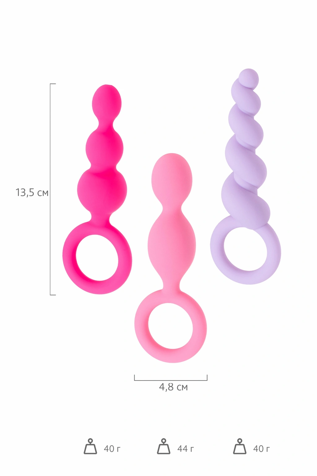 Duygusallık ve cinselliğin sınırlarını genişletmek veya anal okşamaların zevkini anlamak istiyorsanız, bu set tam size göre!Satisfyer Plugs, heyecan verici anal fantezileri gerçeğe dönüştürmek için yaratılmıştır. Esnek, yumuşak dokunuşlu, hipoalerjenik ve su geçirmez uyarıcılar size unutulmaz duygular verecektir!Oyuncaklar tamamen farklı duyumlar için 3 çeşit kabartmada yapılmıştır. Uzunluk: 13,5cm min. Ø 1,9cm;maks.Ø 2,7cmUzunluk: 13 cm min. Ø 1,4cm;maks.Ø 2,8cmUzunluk: 14cm min. Ø 0,9cm;maks.Ø 2,4cm