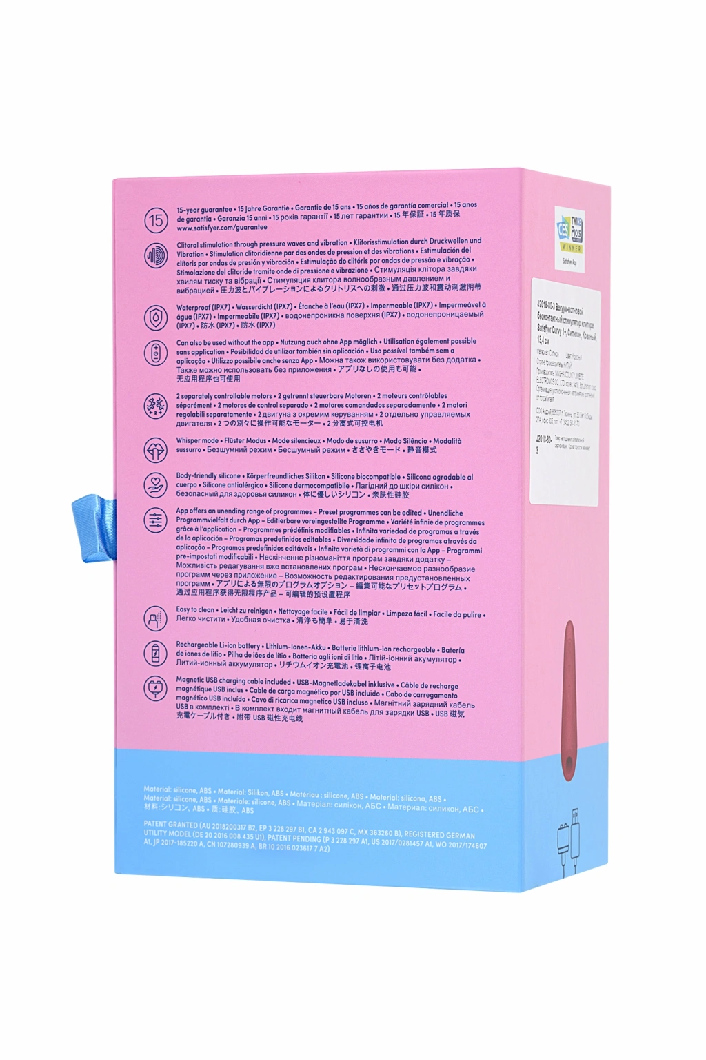Satisfyer Curvy 1+, temassız klitoral vibratörü bir basınç dalgasının etkisi altında duyusal olarak titreşen bir kafa ile birleştirir.Klitoral vibratör tamamen silikonla kaplıdır, Curvy 2+ 'ya kıyasla biraz daha büyük bir delik çapına ve temas alanında daha yumuşak ve daha hassas bir uyarım için daha yumuşak bir silikona sahiptir. İki fonksiyon (vakum stimülasyonu ve titreşim) ayrı ayrı kontrol edilebilir. Hangi seçeneği seçerseniz seçin, unutulmaz orgazmlar garanti edilir, özellikle de boncuğunuza çok nazikçe basan ultra yumuşak bir kafa sayesinde.Curvy 1+, uygulama aracılığıyla telefonunuzla senkronize edilir- Satisfyer Connect!!!Satisfyer ConnectSatisfyer Connect sizi mesafenin sınırlarının olmadığı ve duyguların yeni ve heyecan verici yollarla uyandığı heyecan verici bir evrene davet ediyor. Sürekli gelişen Bluetooth ™ 'e bağlı cinsel sağlık cihazlarıyla, eşsiz bir tatmin duygusunun şehvetli dünyasını keşfedebileceksiniz.