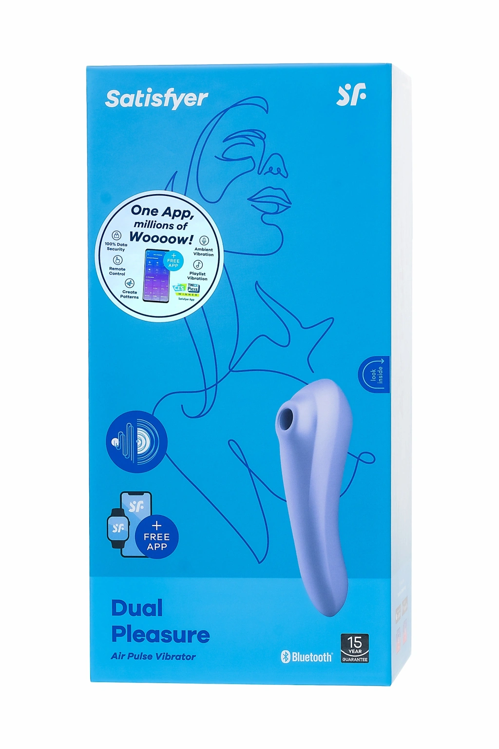 Satisfyer Dual Pleasure vakum Dalga stimülatörü ergonomik bir şekle sahiptir, elinizde tutmak için çok rahattır ve kaymaz. Cihaz, bir basınç dalgasının etkisi altında klitorisin yoğun temassız uyarımını birleştirir ve diğer tarafı, bükülmüş şekli sayesinde, duyusal vajinal titreşimi ve G noktasının uyarılmasını mükemmel bir şekilde yaratır.Satisfyer Dual Pleasure'ın iki işlevi vardır: Satisfyer Air Pulse'un tescilli hava dalgası stimülasyonu ve diğer tarafı mükemmel bir şekilde şehvetli vajinal titreşim yaratır. Aksesuarı çevirebilir ve tutamağı vajinal bir vibratör olarak kullanabilirsiniz.Cihazı kontrol etmek çok kolaydır. Üst düğme, cihazı açmaktan ve Bluetooth bağlantısını kurmaktan sorumludur. Alt düğme, 10 titreşim modundan birini seçmenize ve orta düğmenin 11 dalga stimülasyon modunu değiştirmesine izin verir. Vakum stimülasyonu ve titreşim ayrı ayrı kontrol edilebilir. Hangi seçeneği seçerseniz seçin, özellikle klitorise çok nazikçe basan ultra yumuşak bir kafa sayesinde unutulmaz orgazmlar gara