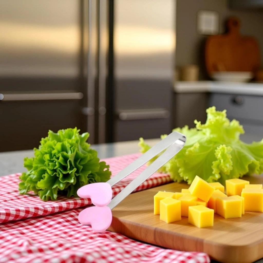 Sevimli kalpli maşa, mutfakta hem şık hem de pratik bir yardımcı olarak tasarlanmıştır. Paslanmaz çelik gövdesi ve silikon uçları sayesinde dayanıklı, güvenli ve uzun ömürlü bir kullanım sunar. Isıya dayanıklı yapısıyla yiyecekleri rahatça kavrayabilir, silikon uçları sayesinde yüzeylere zarar vermeden kullanım imkânı sağlar. 13 cm uzunluğu ve 2,8 cm genişliği ile kompakt boyutlarda olup, çerez, salata, pasta, ekmek ya da küçük atıştırmalıkları servis etmek için idealdir. Pembe kalp detaylarıyla estetik ve sevimli bir görünüme sahiptir. Temizlemesi son derece kolay olup elde veya bulaşık makinesinde yıkanabilir. Hem günlük kullanımda hem de özel sunumlarda mutfağınıza zarafet katar. Paket İçeriği1 adet Sevimli Kalpli Maşa