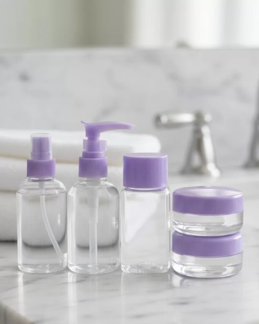Seyahat için özel olarak tasarlanan 5’li şeffaf kozmetik şişe seti, kişisel bakım ürünlerinizi güvenli ve düzenli şekilde taşımanızı sağlar. Set içerisinde bir adet 30 ml sıvı şişe, bir adet sprey şişe, bir adet şampuan kabı ve iki adet krem kutusu yer alır. Farklı başlık tipleri sayesinde sıvı ve krem formundaki ürünler için uygun kullanım sunar.Şeffaf tasarımı sayesinde içine koyduğunuz ürünü kolayca görebilir ve kontrol edebilirsiniz. Esnek ve dayanıklı materyal yapısı sayesinde uzun süreli kullanım sağlar. Sızdırmaz kapak sistemi, çantanızın içinde dökülme riskini önler.Kompakt boyutu sayesinde uçak seyahatlerinde el bagajına uygundur. Spor salonu, kamp, günlük kullanım ve iş seyahatleri için idealdir. Fermuarlı taşıma çantası sayesinde ürünler düzenli kalır ve hijyenik şekilde muhafaza edilir.