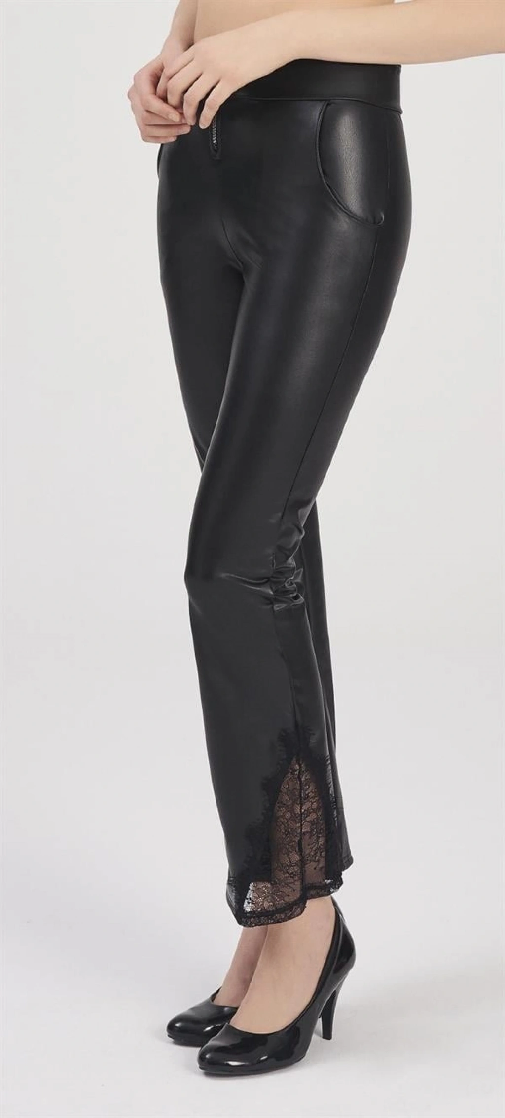 VipMarketim Si̇yah Deri̇ Görünümlü Pantolon (Kod:334)