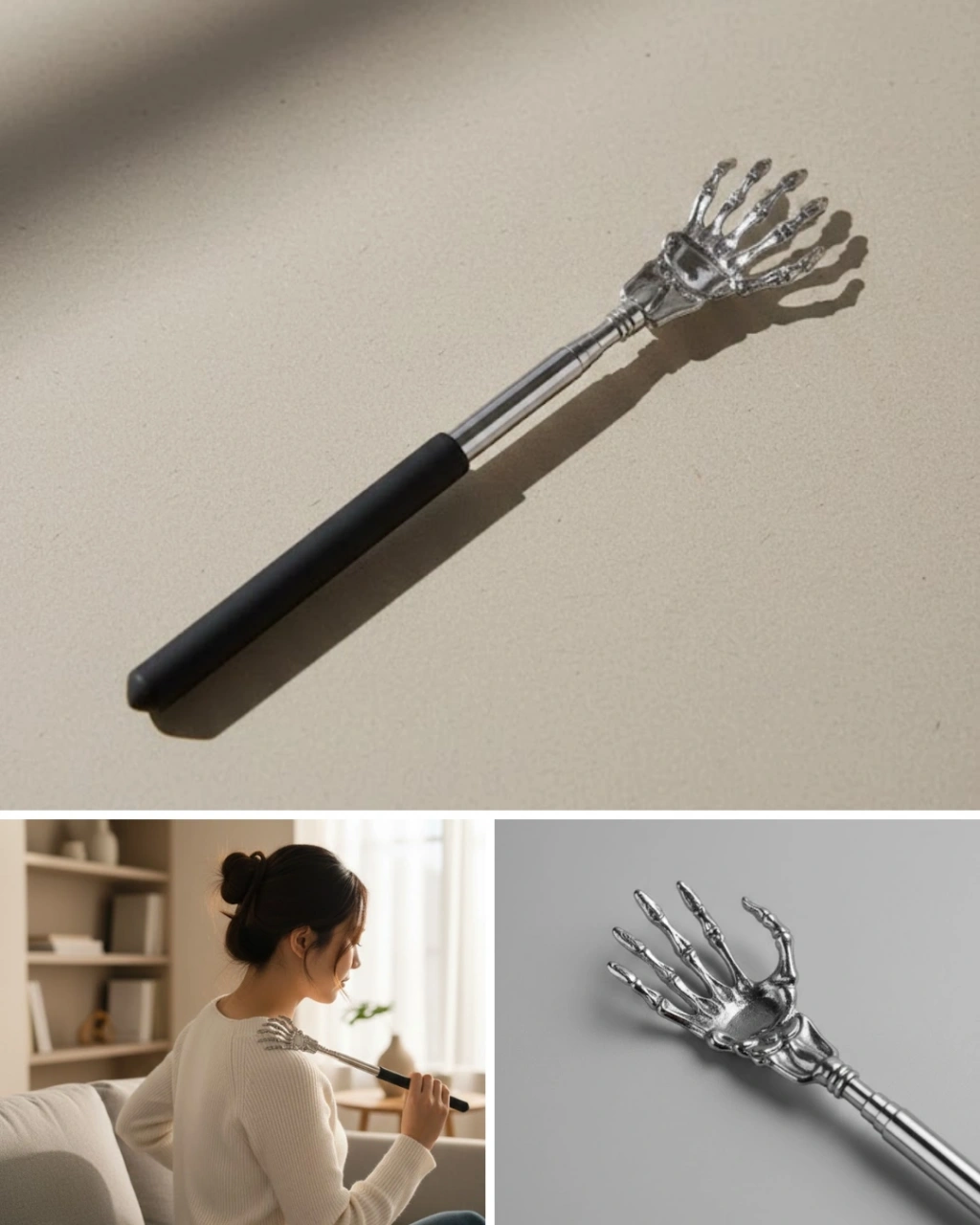 Sırt kaşıyıcı, özellikle yaşlı bireylerin günlük hayatını kolaylaştırmak amacıyla tercih edilen ürünlerden biridir. Ayarlanabilir teleskopik kol yapısı sayesinde sırt bölgesine zahmetsizce ulaşmayı sağlar. Ergonomik tutma sapı ile rahat ve güvenli bir kullanım sunar.Katlanabilir yapısı sayesinde saklaması ve taşıması son derece kolaydır. Figürlü uç tasarımı, etkili kaşıma performansı sunarken ürüne eğlenceli bir görünüm kazandırır.Günlük konforu artıran bu sırt kaşıma aparatı, pratik kullanım sunmasıyla öne çıkar. Özellikle tek başına sırtına ulaşmakta zorlanan kullanıcılar için idealdir.