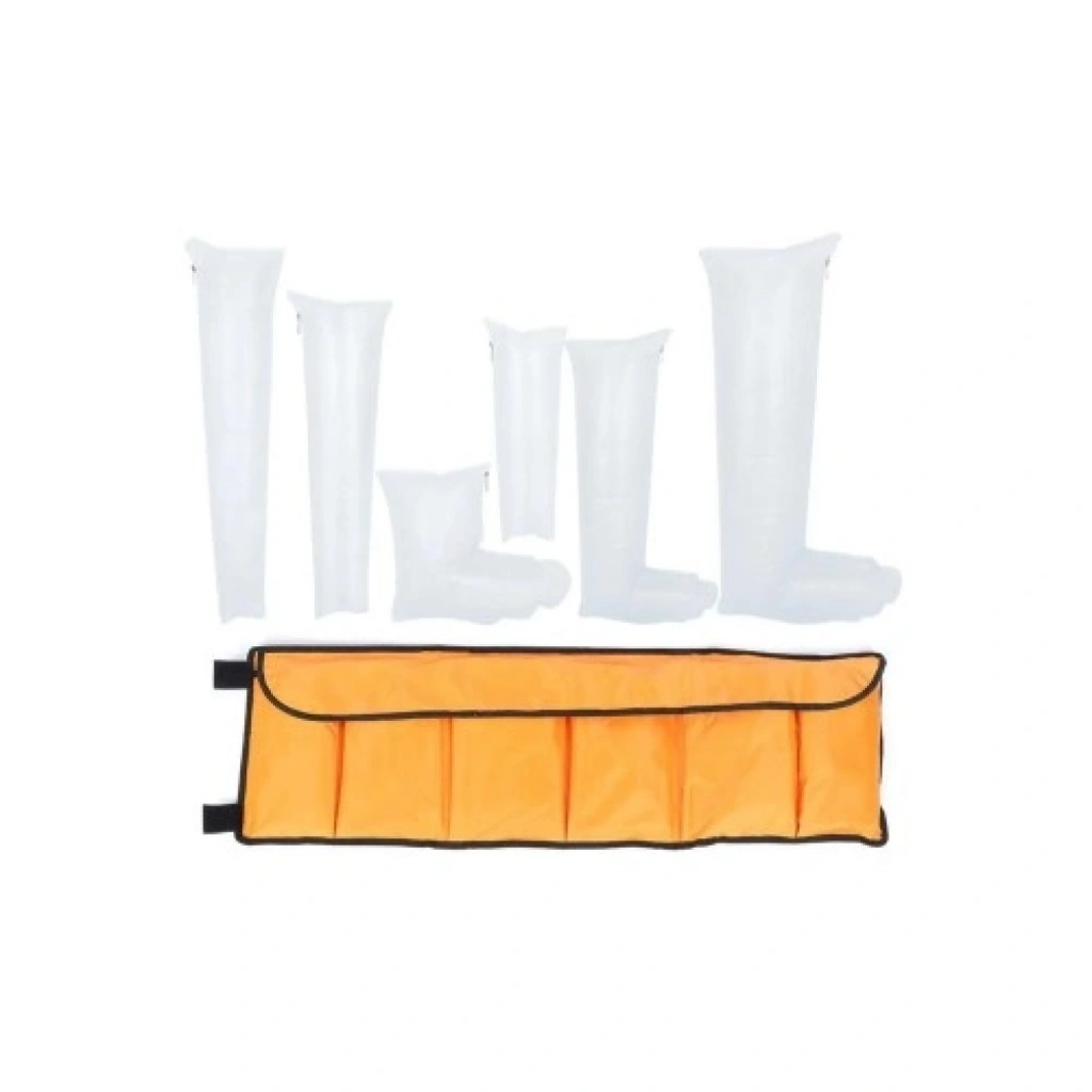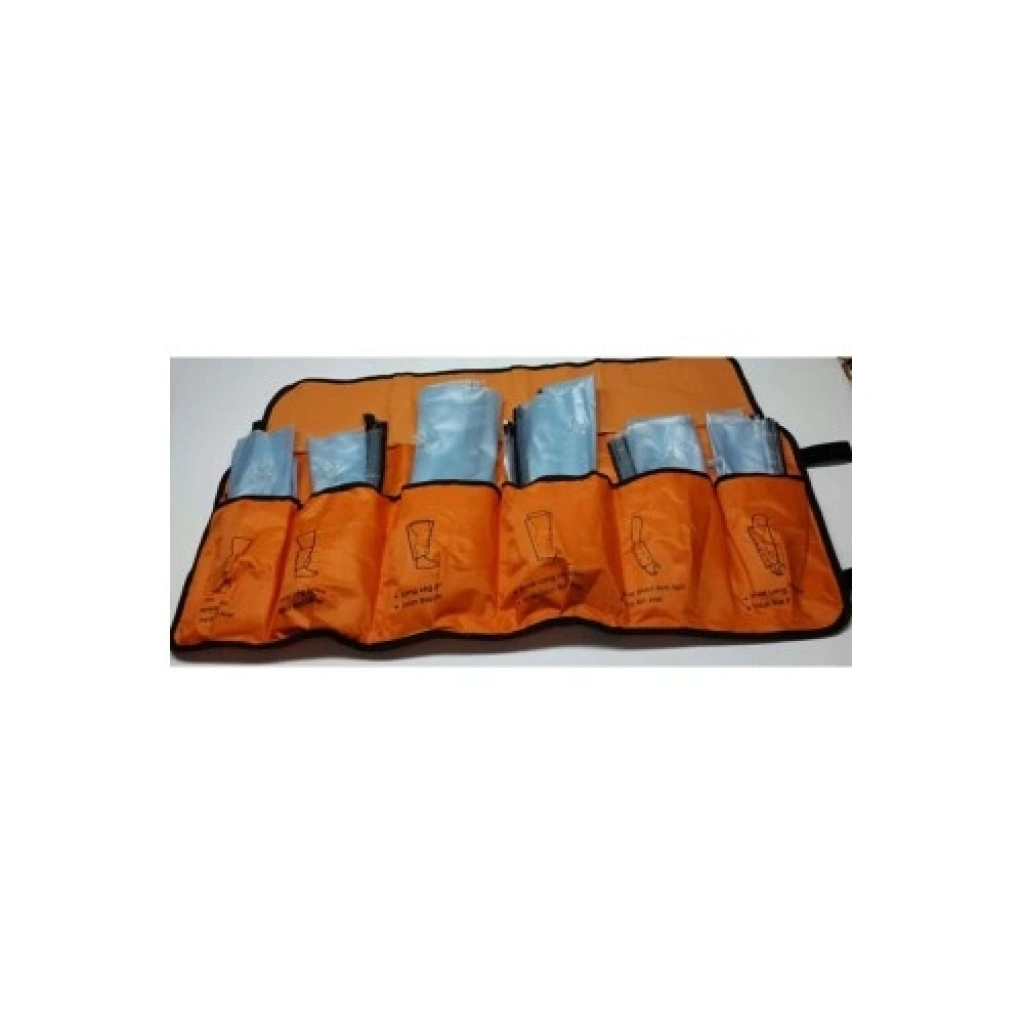 Farklı vücut bölgelerine uygun 6 farklı boyutta şişme atel içeren set. İlk yardım çantalarının ve acil durum ekipmanlarının vazgeçilmezi.