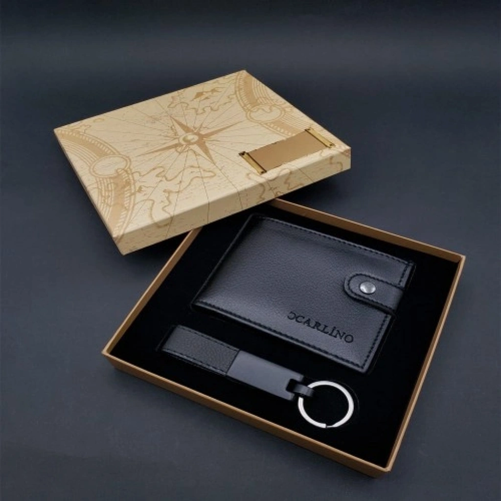 Siyah Cüzdan ve Anahtarlık SetiSiyah cüzdan ve anahtarlık seti, erkeğe özel hazırlanmış şık ve kullanışlı bir hediye seçeneğidir. Hem günlük kullanımda ihtiyaç duyulan hem de stil sahibi bir görünüm sunan bu set, babaya, erkek kardeşe veya sevdiğiniz kişiye gönül rahatlığıyla hediye edebileceğiniz zarif bir kombinasyondur.Özel tasarım kutusu ve içindeki aksesuarların uyumu sayesinde son derece şık bir sunum sağlar. Cüzdan ve anahtarlık üzerine isim yazılarak seti tamamen kişiye özel bir hale getirebilir, hediyenizi daha anlamlı bir forma dönüştürebilirsiniz. Suni deri cüzdanın klasik siyah rengi ve deri anahtarlığın dikkat çekici görünümü, seti oldukça kaliteli gösterir.Siyah Cüzdan ve Anahtarlık Seti Özellikleri: Kutu kaliteli mukavva malzemeden üretilmiştir. Cüzdan suni deridir. Cüzdan içi 6 kartlık, 2 özel resimlik, 1 bozuk para bölmesi, 2 kağıt para bölmesi ve 2 gizli gözden oluşur. Anahtarlık kaliteli deri ve metal malzemeden üretilmiştir. Kişiye özel baskı ve isim ekleme yapılabilir. Özel günlerde erkeğe verilebilecek en işlevsel ve şık hediyelerden biridir. Ürün Ölçüleri: Kutu: 18 cm × 17 cm × 4 cm Suni Deri Cüzdan: 9 cm × 11 cm Deri Anahtarlık: 11 cm × 2 cm