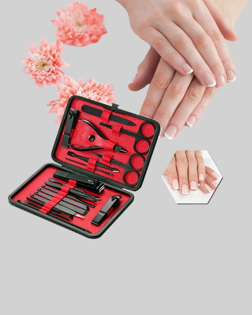 Kendi bakımınızı profesyonel kalitede yapmanıza imkan tanıyan bu 17 parçalık manikür seti, dayanıklı paslanmaz çelik malzemeden üretilmiştir. Hijyenik ve uzun ömürlü kullanımı sayesinde hem el hem ayak bakımında size tam destek sunar. Setin içerisinde bulunan farklı boyutlarda tırnak makasları, törpü, cımbız, pedikür bıçakları, tırnak kaldırma aparatı ve kulak temizleme aparatı gibi aletler, her ihtiyacınızı karşılayacak şekilde tasarlanmıştır. Yeni nesil siyah kaymaz kaplama teknolojisi, aletlere modern bir görünüm kazandırırken kaymayı önleyerek kullanım kolaylığı sağlar. Özel deri kaplama taşıma kutusu, parçaların düzenli şekilde saklanmasına yardımcı olur. Kompakt ve hafif yapısı sayesinde çantanızda kolayca taşıyabilir, seyahatlerde pratik şekilde yanınızda bulundurabilirsiniz. Günlük kullanım için ideal olduğu kadar, hediye olarak da tercih edebileceğiniz çok yönlü bir settir.