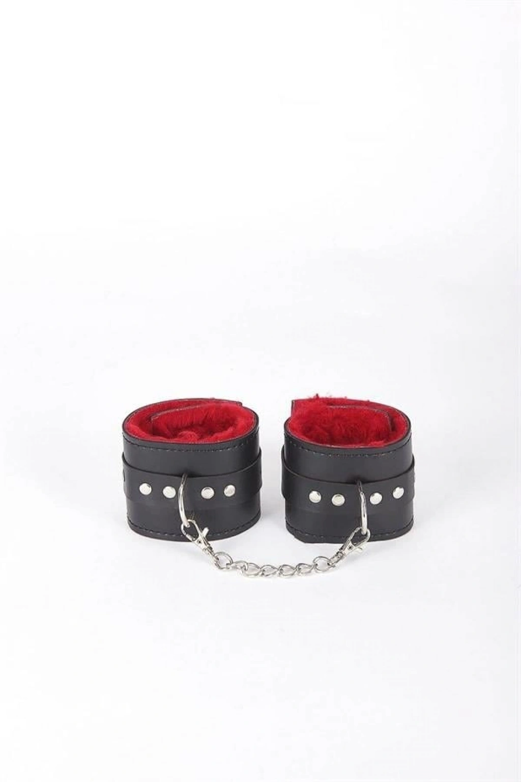 VipMarketim Siyah Kırmızı İçi Tüylü Bileklikli Kelepçe