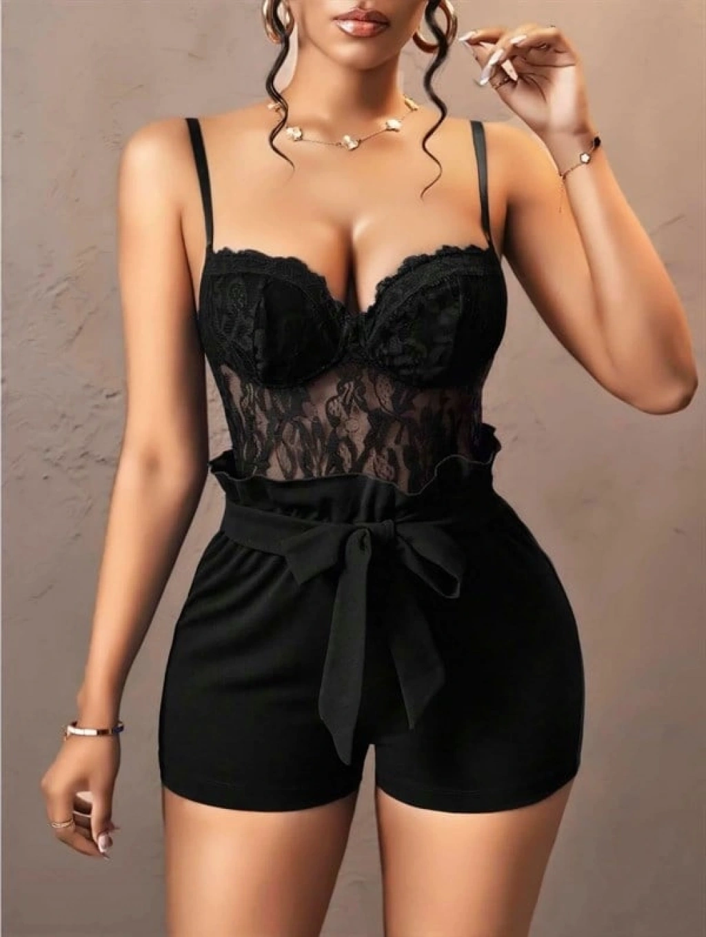 Zarif dantel dokusu ve şık kuşak detayıyla tasarlanan bu siyah fantezi elbise, feminen ve sofistike bir görünüm sunar. Vücuda oturan kesimi hatları zarifçe vurgularken, bel kısmındaki kuşak detayı silueti daha ince ve dengeli gösterir. Dantel işlemeler tasarıma romantik bir dokunuş katarken, siyah rengin asaletini ön plana çıkarır. Özel anlar ve iddialı kombinler için şık bir tercihtir.