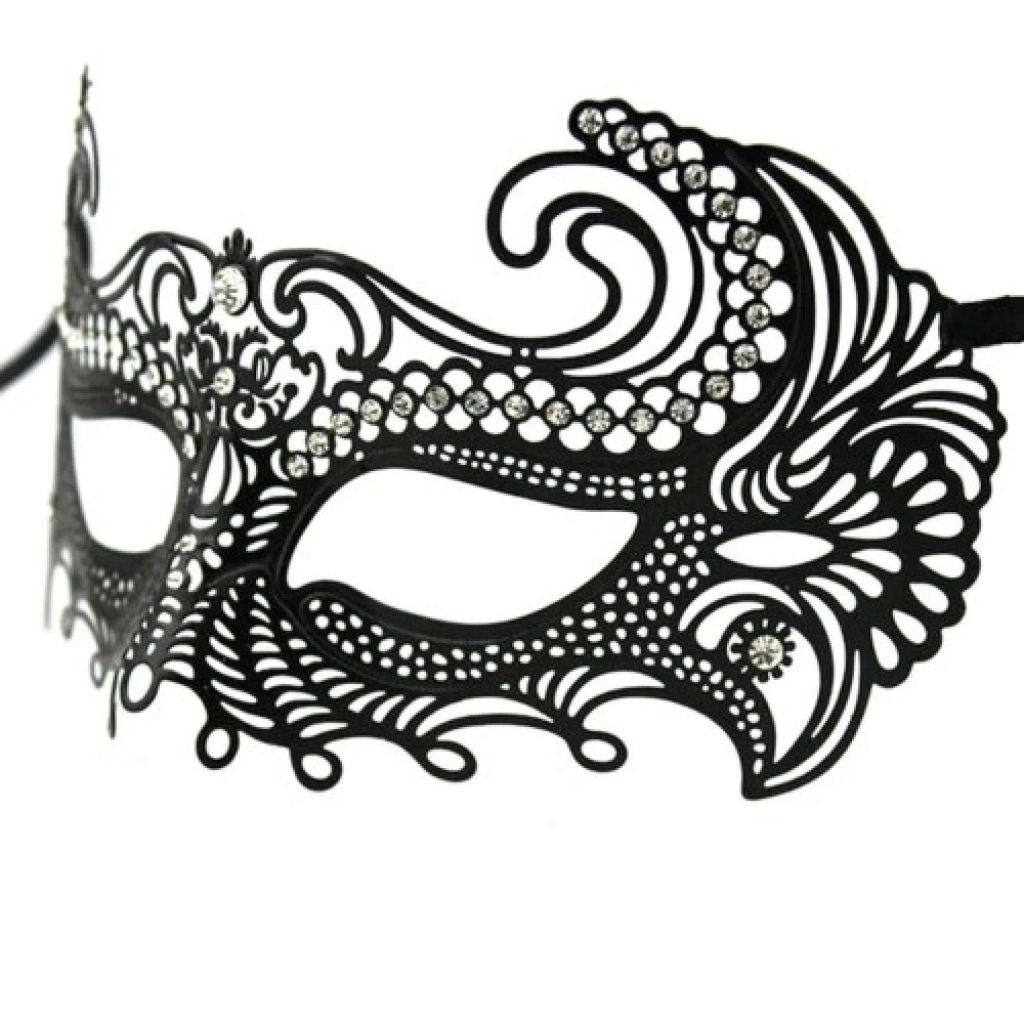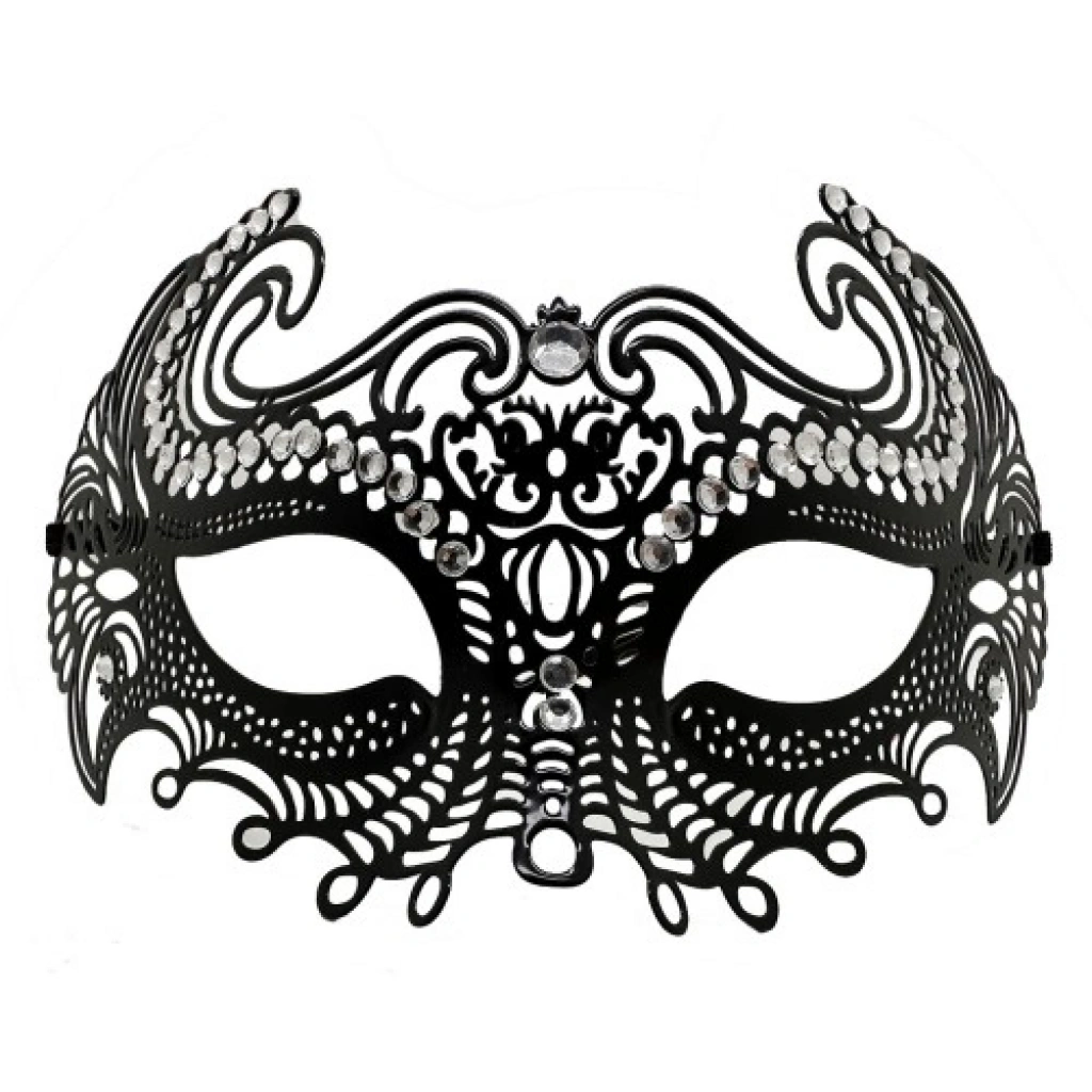 VipMarketim Siyah Lazer Kesim Kristal Taşlı Metal Venedik Maskesi