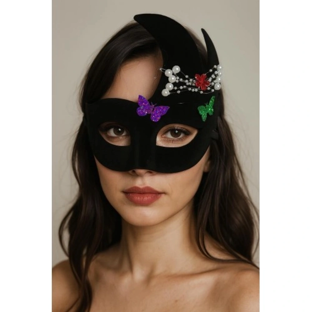 ve AvantajlarıLüks Süet Doku: Maskenin dış yüzeyi mat siyah süet ile kaplanmıştır. Bu özel doku, plastik maskelerin aksine ışığı emerek çok daha asil ve derin bir görünüm sunar.İnci ve Kristal Işıltısı: Göz çevresi ve maske kenarları, kontrast yaratan beyaz inciler ve ışıl ışıl taşlarla bezenmiştir. Her bakışınızda dikkatleri üzerinize çeker.Konforlu İç Yapı: Kaliteli plastik gövde üzerine uygulanan hafif malzeme yapısı sayesinde 20x22 cm boyutlarına rağmen yüzde ağırlık yapmaz.Mükemmel Görüş ve Uyum: Ergonomik göz delikleri geniş bir görüş açısı sunarken, arkadaki ip aparatı sayesinde maske yüzünüze tam oturur ve kayma yapmaz.Yüksek Dayanıklılık: A kalite malzemeden üretilen süet kaplama, yıpranmaya karşı dirençlidir; özel kutusunda saklayarak yıllarca tüm balolarda kullanabilirsiniz.Kullanım AlanlarıSeçkin Maskeli Balolar: Venedik Karnavalı ruhunu en şık şekilde yansıtmak isteyenler için ideal bir başyapıttır.Gala Geceleri ve Özel Davetler: Siyah bir smokin veya gece elbisesiyle kombinlendiğinde, görünümünüzü saniyeler içinde ikonik bir seviyeye taşır.Tiyatro ve Film Prodüksiyonları: Sahne ışıkları altında parlayan taşları ve karakteristik yapısıyla profesyonel çekimler için mükemmel bir aksesuardır.Sanatsal Portre Çekimleri: Gizemi ve estetiği ön plana çıkarmak isteyen fotoğrafçılar için eşsiz bir "prop" seçeneğidir.