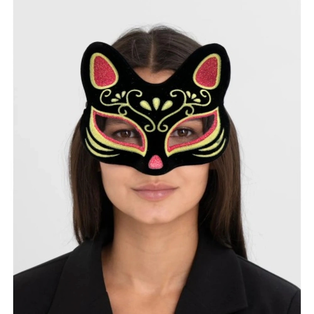 Malzeme: Yumuşak süet kaplama.Renk: Siyah zemin üzerine kırmızı ve sarı sim detayları.Tasarım:Kedi şeklinde estetik bir tasarım.Göz çevresi açık, rahat görüş sağlayan yapı.Esnek lastikli bağlantı ile kolay kullanım.Boyut: 17x14 cm (yetişkin ve gençlere uygun).Kullanım Alanı: Maskeli balolar, kostüm partileri, doğum günü etkinlikleri ve özel temalı geceler için ideal.Paket İçeriği1 Adet Siyah Süet Kırmızı Sarı Simli Kedi Maskesi