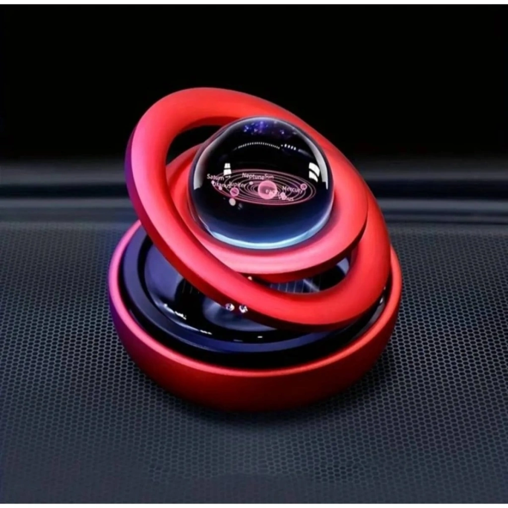 Solar 360° Dönen Araba Kokusu, hem görselliği hem de işlevselliğiyle dikkat çeker. Üst kısmında yer alan şeffaf kristal küre içerisinde 3D galaksi veya gezegen tasarımı yer alır. Ortam ışığıyla birlikte şık bir görünüm sunar. Küre etrafında dönebilen iki halka bulunur. Bu halkalar, dekoratif olarak tasarlanmış olup ürünün estetik değerini artırır. İç kısmına yerleştirilen aroma tableti veya sıvı esans sayesinde aracın içinde ferah bir koku yayılmasını sağlar. Güneş enerjisi sayesinde hareket ettiğinde kokunun daha hızlı dağılmasını sağlar. Hem evde masa üstünde dekoratif amaçla hem de araç içi parfüm olarak kullanılabilir. Kırmızı, siyah, altın, gümüş ve mavi gibi farklı metalik renklerde sunulur ve stok durumuna göre karışık gönderilir. Paket İçeriği1 Adet Solar 360° Dönen Araba Kokusu