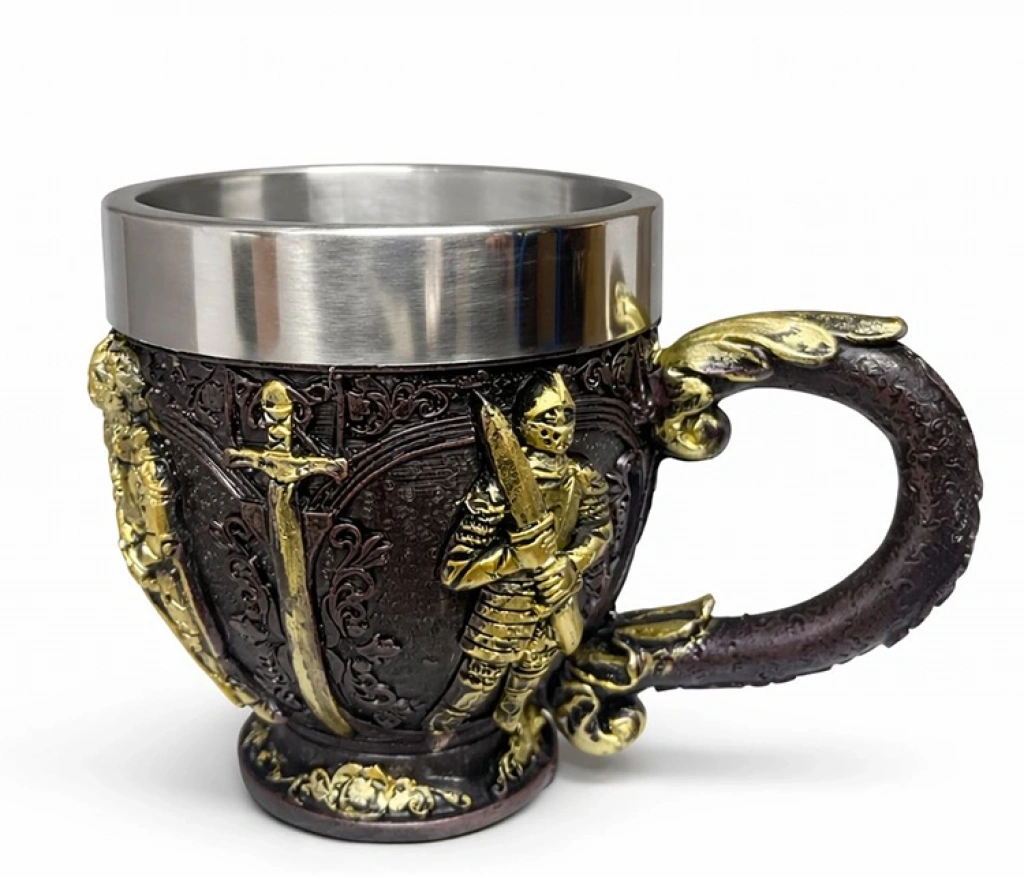 ÖzellikDetayÜrün Adı3D Şövalye Kabartmalı Çelik Kupaİç MalzemeGıda Sınıfı Paslanmaz ÇelikDış MalzemeYüksek Detaylı 3D Reçine İşlemeÖlçüler9.5 cm (Çap) x 11 cm (Yükseklik)TasarımOrta Çağ Şövalye ve Zırh TemalıKulp YapısıTematik ve Ergonomik TasarımKullanımSıcak ve Soğuk Tüm İçecekler İçin UygunStilGotik, Tarihi ve Dekoratif