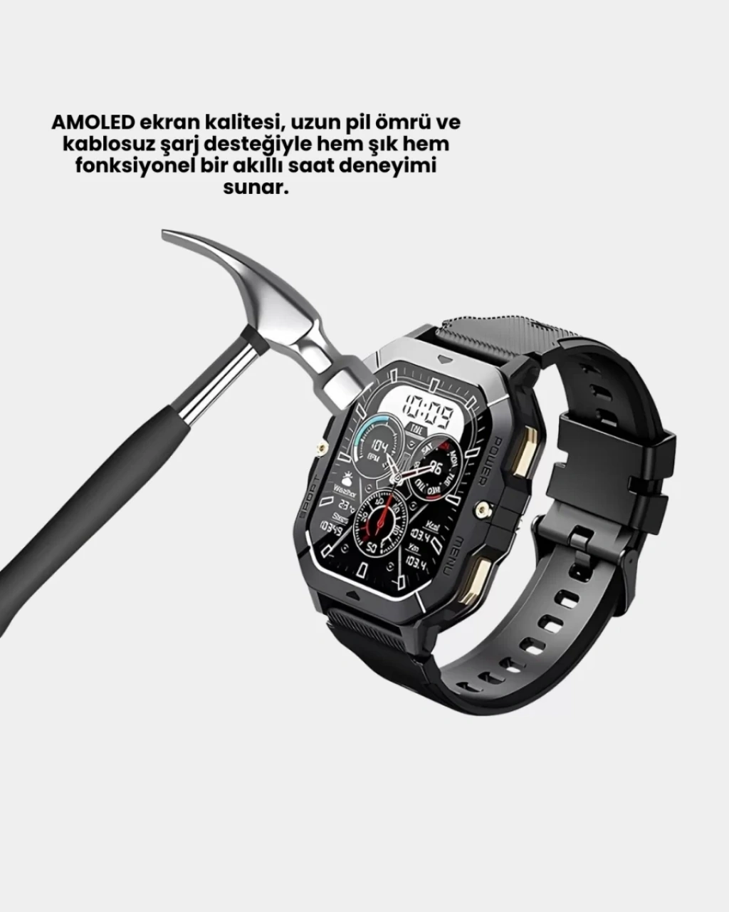 Akıllı özellikleri ve sade tasarımı bir araya getiren bu saat, günlük yaşamda pratiklik sunar. Bildirim takibi, spor modları, müzik kontrolü ve zamanlayıcı gibi fonksiyonlar sayesinde hayatınızı daha düzenli hale getirir.Uzun pil ömrü ve kablosuz şarj desteği, kullanım konforunu artırır. Ultra ince ve hafif yapısı, gün boyu bilekte rahat bir deneyim sağlar. AMOLED ekranı ile hem estetik hem de işlevsel bir kullanım sunar.Teknoloji ve şıklığı bir arada isteyen kullanıcılar için güçlü bir alternatiftir.