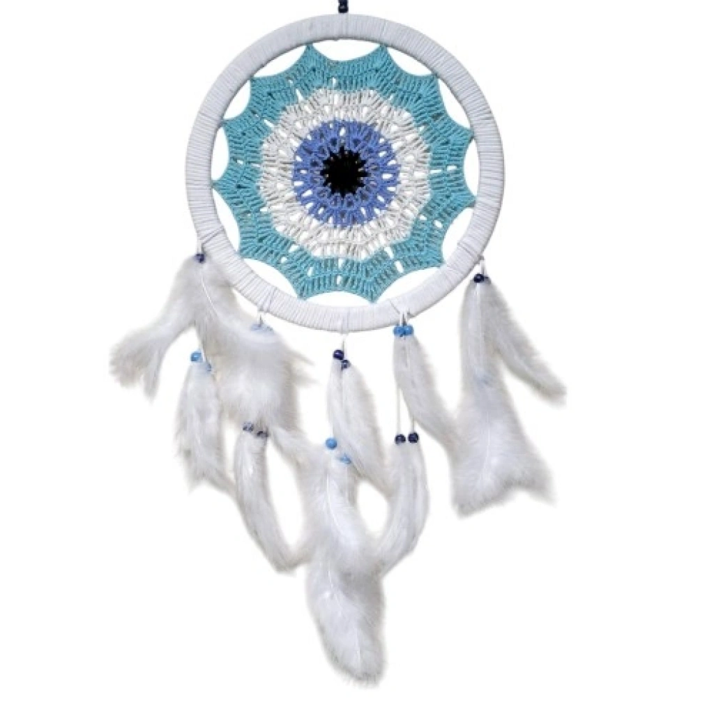 Su Yeşili Renginde Nazar Motifli Kuş Tüylü Duvar SüsüSu, ferahlığı ve huzuru simgeleyen yeşil tonlarıyla tasarlanan bu nazar motifli kuş tüylü duvar süsü, estetik görünümü ve manevi anlamıyla yaşam alanlarınıza sakin ve zarif bir dokunuş katar. Nazar motifi, kötü enerjilere karşı koruyucu bir sembol olarak öne çıkarken su yeşili rengin dingin etkisi dekorasyona doğallık kazandırır.Ürünümüzün yuvarlak ana gövdesi 28 santimetre çapındadır. Dengeli ve geniş formu sayesinde duvarda dikkat çekici bir duruş sergiler. Kuş tüyleriyle süslenen tasarım, ürüne hafiflik ve bohem bir hava katarak mekâna doğal bir hareket kazandırır.İp dahil yaklaşık 70 santimetre toplam uzunluğa sahip olan bu duvar süsü, doğal ip kullanılarak hazırlanmıştır. Doğal malzemeler sayesinde sıcak, sade ve çevre dostu bir görünüm sunar. El emeği detayları her ürünü kendine özgü ve özel kılar.Salon, yatak odası, antre, ofis ve meditasyon alanları için ideal olan bu su yeşili nazar motifli duvar süsü; modern, bohem ve geleneksel dekorasyon stilleriyle uyum sağlar. Aynı zamanda sevdikleriniz için anlamlı ve şık bir hediyelik alternatifi olarak da tercih edilebilir.