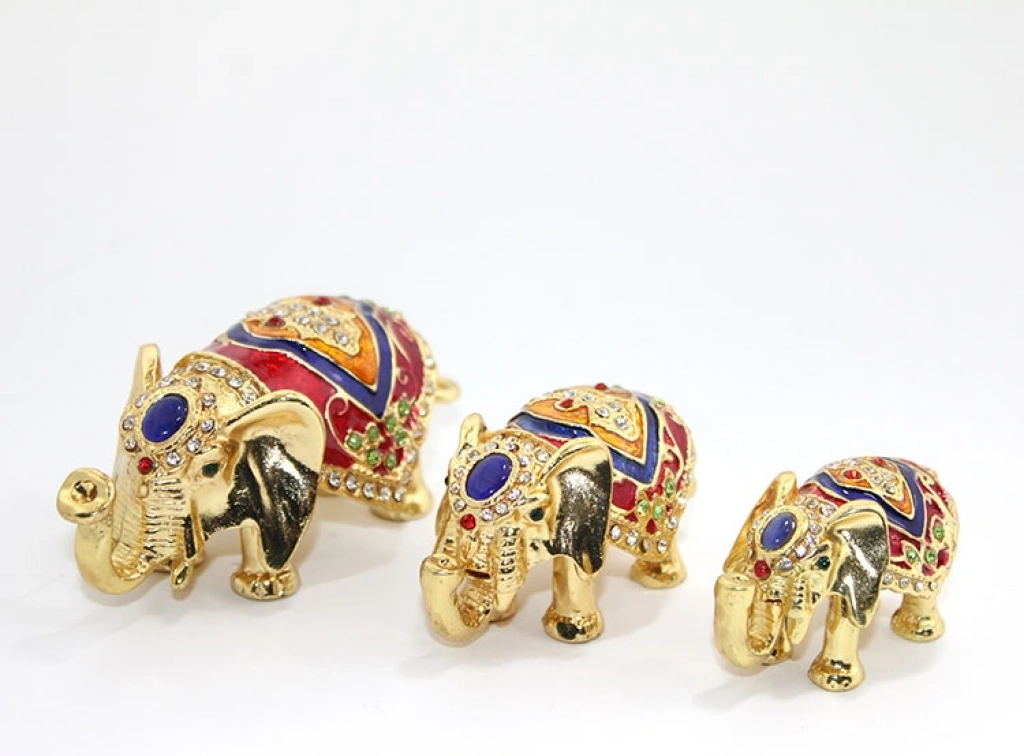 Swarovski Taşlı 3’lü Fil Figürü, altın kaplama detayları ve ışıltılı Swarovski taş süslemeleri ile dekorasyona zarafet katıyor. 9x7x5 cm boyutlarında olan bu üçlü set, şans, bolluk ve bereketin simgesi olarak bilinen filler ile hem estetik hem de anlamlı bir dekoratif obje sunar. Ofis, salon, vitrin veya çalışma alanlarında göz alıcı bir şıklık sağlayan bu biblo, hediyelik olarak da mükemmel bir tercihtir.Paket İçeriği1 Adet Swarovski Taşlı 3’lü Fil Figürü Seti