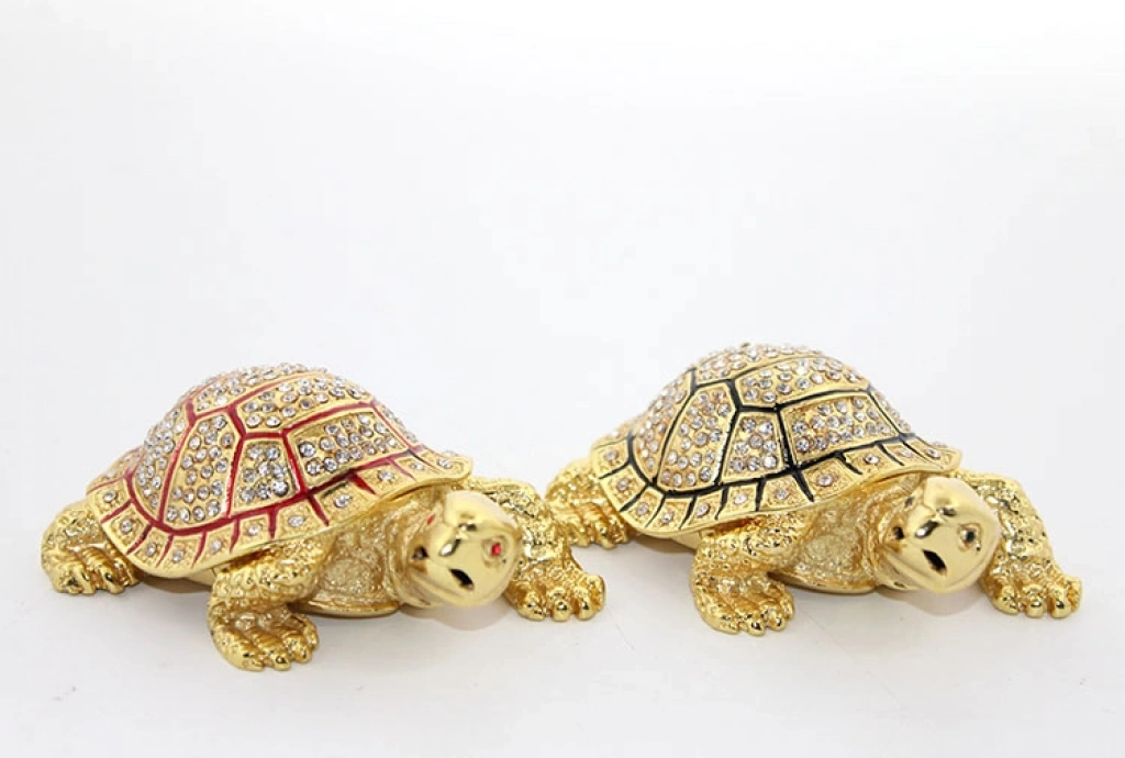 Swarovski taşlarıyla süslenmiş kaplumbağa figürü, 10x7 cm boyutundadır. Altın renkli detayları ve parlak Swarovski taşları ile zarif bir görünüm sunar. Hem dekoratif bir obje olarak hem de koleksiyonluk bir figür olarak kullanılabilir. Şıklığı ve zarafetiyle, özellikle ev dekorasyonuna veya hediye olarak mükemmel bir seçimdir. Bu figür, aynı zamanda doğa ve hayvan figürlerine ilgi duyanlar için eşsiz bir hediye alternatifi sunar. Paket İçeriği1 Adet Swarovski Taşlı Kaplumbağa Figürü Model 1