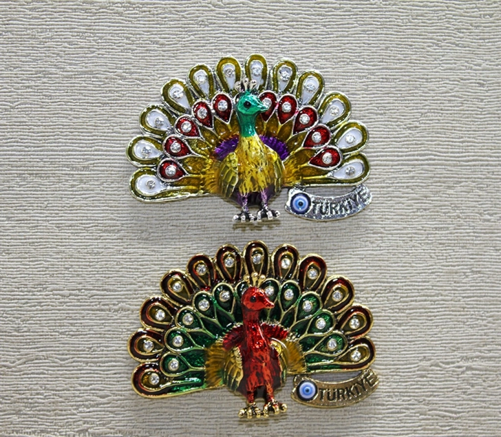 Swarovski Taşlı Tavuskuşu Magnet, zarif tavuskuşu figürü ve parlak taş detaylarıyla tasarlanmış dekoratif bir buzdolabı magnetidir. Renkli taşlarla süslenmiş kanat formu, ürüne ışıltılı ve dikkat çekici bir görünüm kazandırır. Detaylı işçiliğe sahip Swarovski taşlı tasarım yapısı sayesinde klasik magnet modellerinden ayrılır ve bulunduğu yüzeyde dekoratif bir etki oluşturur. Tavuskuşu figürünün estetik formu, ürünü hem şık hem de anlamlı bir dekoratif metal magnet alternatifi haline getirir. 6,5 cm boyutundaki kompakt yapısı sayesinde buzdolabı ve metal yüzeylerde rahatlıkla kullanılabilir. Ev dekorasyonuna zarif bir dokunuş katmak isteyenler için dikkat çekici bir taşlı tavuskuşu magnet seçeneğidir. Görselde yer alan modellerden biri gönderilir. Ürün Teknik Özellikleri ÖzellikAçıklama Ürün AdıSwarovski Taşlı Tavuskuşu Magnet Boyut6,5 cm TasarımTavuskuşu Figürlü ve Taşlı GönderimModellerden Biri Gönderilir Kullanım AlanıBuzdolabı ve Metal Yüzeyler Paket İçeriği1 Adet Swarovski Taşlı Tavuskuşu Magnet