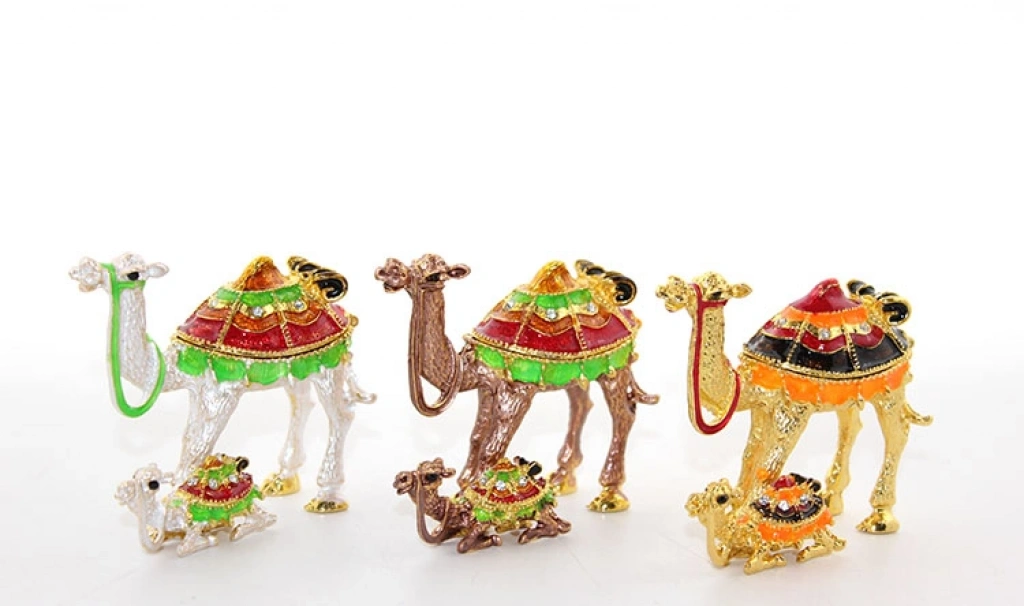 Swarovski Yavrulu Deve Model 4, zarif ve otantik tasarımıyla dikkat çeken koleksiyonluk bir dekoratif objedir. Metal gövdeye sahip olup, yüzeyinde parlak emaye kaplama ve özenle işlenmiş Swarovski taşlarla süslenmiştir. Yavrulu deve figürü, şık detaylarıyla masa, vitrin veya raf dekorasyonları için ideal bir seçenektir. Hem otantik koleksiyon parçaları sevenler hem de özel ve anlamlı hediyeler arayanlar için mükemmel bir tercihtir.Paket İçeriği1 Adet Swarovski Yavrulu Deve