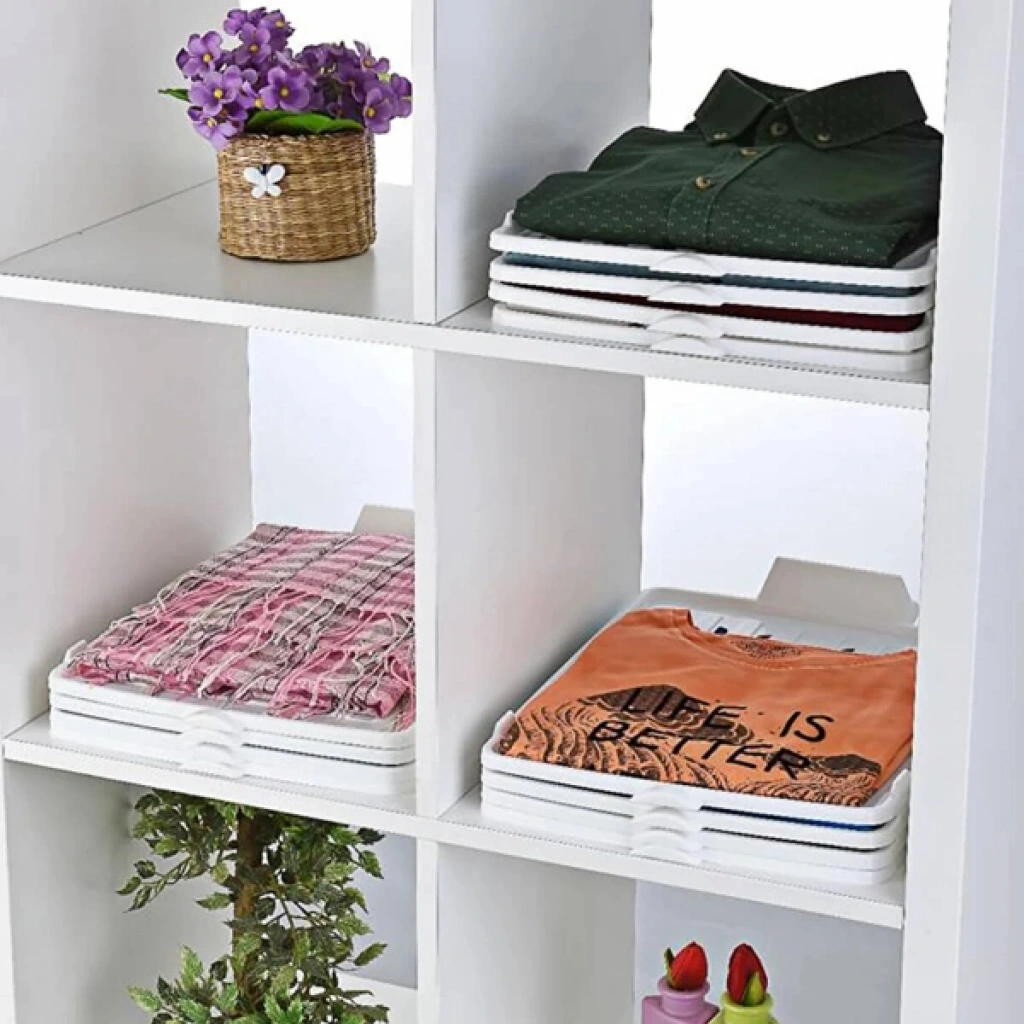 T-Shirt Düzenleyici Aparat, dolap ve raf içinde kıyafetlerinizi düzenli ve düzgün bir şekilde istiflemenizi sağlayan pratik bir organizasyon çözümüdür. Üst üste konumlandırılabilen tasarımı sayesinde tişört, gömlek, kazak ve ince kıyafetlerin katlanmış halde dağılmadan saklanmasına yardımcı olur. Özel tasarımı sayesinde bir ürünü alırken diğer kıyafetlerin bozulmasını engeller ve dolap içinde düzeni korur. Dayanıklı plastik yapısı ile uzun süreli kullanıma uygundur ve formunu kaybetmez. T-shirt düzenleyici aparat yapısı ile raf alanını verimli kullanmanıza yardımcı olurken, dolap içi organizer olarak hem gardırop hem de şifonyer çekmecelerinde kullanılabilir. Minimal ve sade tasarımı sayesinde dolap içinde temiz ve düzenli bir görünüm oluşturur. Pratik kullanım sunan bu kıyafet düzenleyici aparat, özellikle dar alanlarda maksimum depolama avantajı sağlar. Ürün Teknik Özellikleri Özellik Açıklama Ürün Adı T-Shirt Düzenleyici Aparat Malzeme Dayanıklı plastik Kullanım Alanı Gardırop, raf, şifonyer içi Kullanım Amacı Tişört ve katlanmış kıyafet düzenleme Tasarım Üst üste istiflenebilir yapı Paket İçeriği1 Adet T-Shirt Düzenleyici Aparat