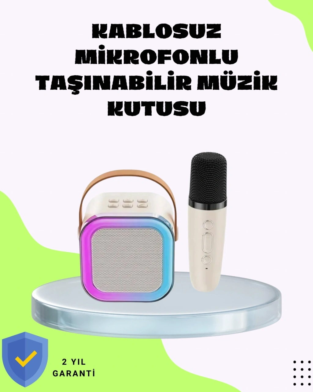 Taşınabilir karaoke mikrofon hoparlör seti, eğlenceyi her yere taşıyan kullanışlı bir üründür. Yüksek kaliteli hoparlör ve mikrofon kombinasyonu sayesinde sesinizi net ve güçlü şekilde yansıtmanızı sağlar. Karaoke, müzik ve eğlence odaklı etkinlikler için idealdir.Bluetooth kablosuz bağlantı özelliği ile telefon ve tabletlerle hızlı eşleşme sağlar. 10 metrelik bağlantı mesafesi, kablosuz kullanım avantajı sunar. Ses kontrol düğmeleri ile ses seviyesini kolayca ayarlayabilirsiniz.10–20 watt çıkış gücü, dengeli ve güçlü bir ses performansı sunar. 75 dB ses oranı, net ve anlaşılır bir müzik deneyimi sağlar. Lityum pil teknolojisi sayesinde tek şarjla yaklaşık 6 saat kesintisiz kullanım sunar.Kompakt ve taşınabilir tasarımı sayesinde partilerde, pikniklerde ve dış mekan etkinliklerinde rahatlıkla kullanılabilir. Şarj edilebilir pil yapısı, priz bağımlılığını ortadan kaldırır.Paket içeriği; 1 adet hoparlör, 1 adet mikrofon ve 1 adet şarj kablosundan oluşur. Eğlenceli ve pratik bir karaoke deneyimi arayanlar için ideal bir settir.