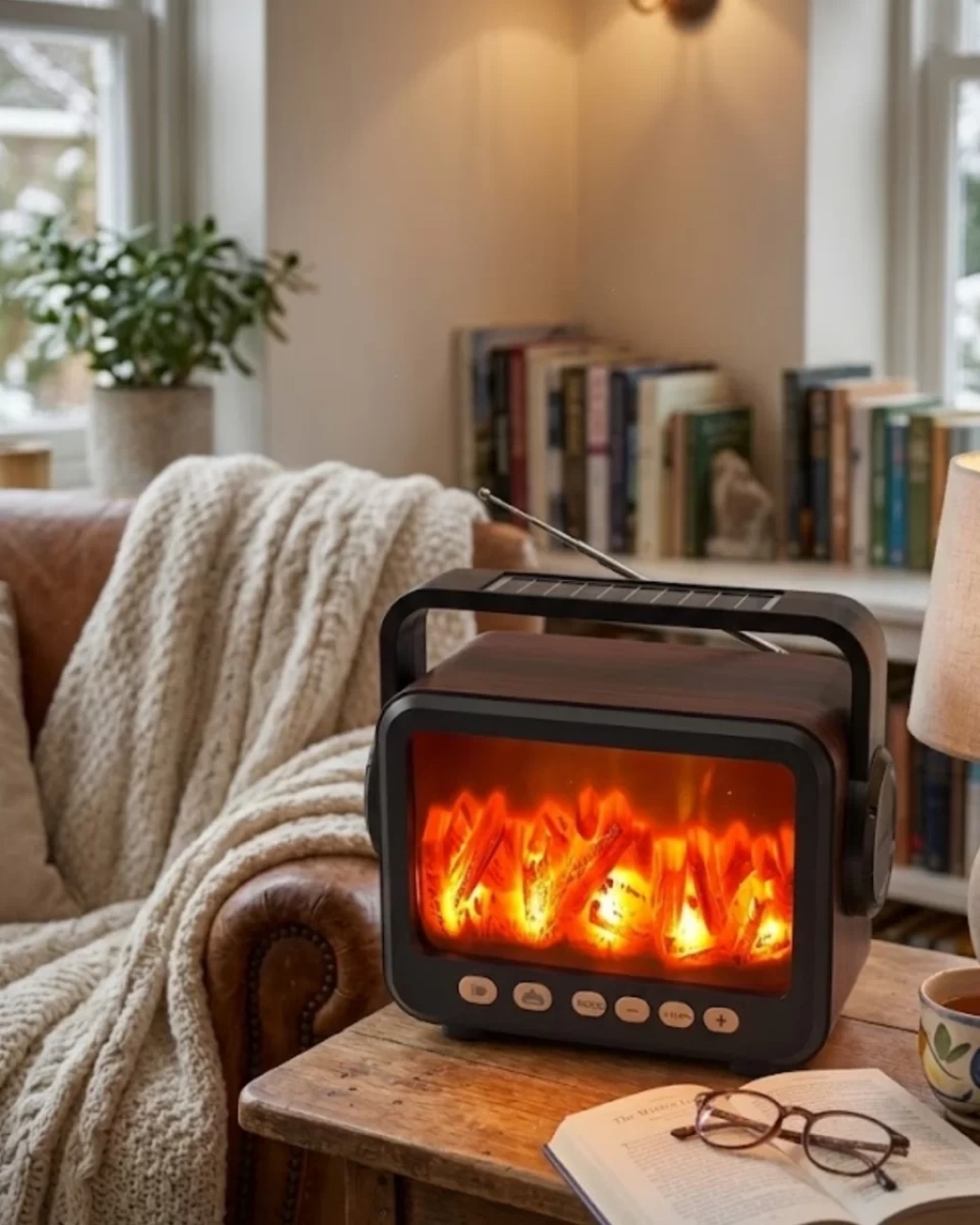 Taşınabilir şömine efektli bluetooth hoparlör, dekoratif tasarımı ve çoklu müzik özellikleri ile hem şık bir dekor ürünü hem de pratik bir müzik cihazıdır. LED alev efekti sayesinde ortamınıza sıcak ve estetik bir atmosfer katar.Bluetooth bağlantısı sayesinde telefon ve tablet ile kolayca eşleşir. USB ve TF kart girişleri sayesinde müziklerinizi farklı kaynaklardan oynatabilirsiniz.FM radyo özelliği sayesinde radyo kanallarını dinleyebilir ve güçlü hoparlör sistemi ile kaliteli ses deneyimi yaşayabilirsiniz.