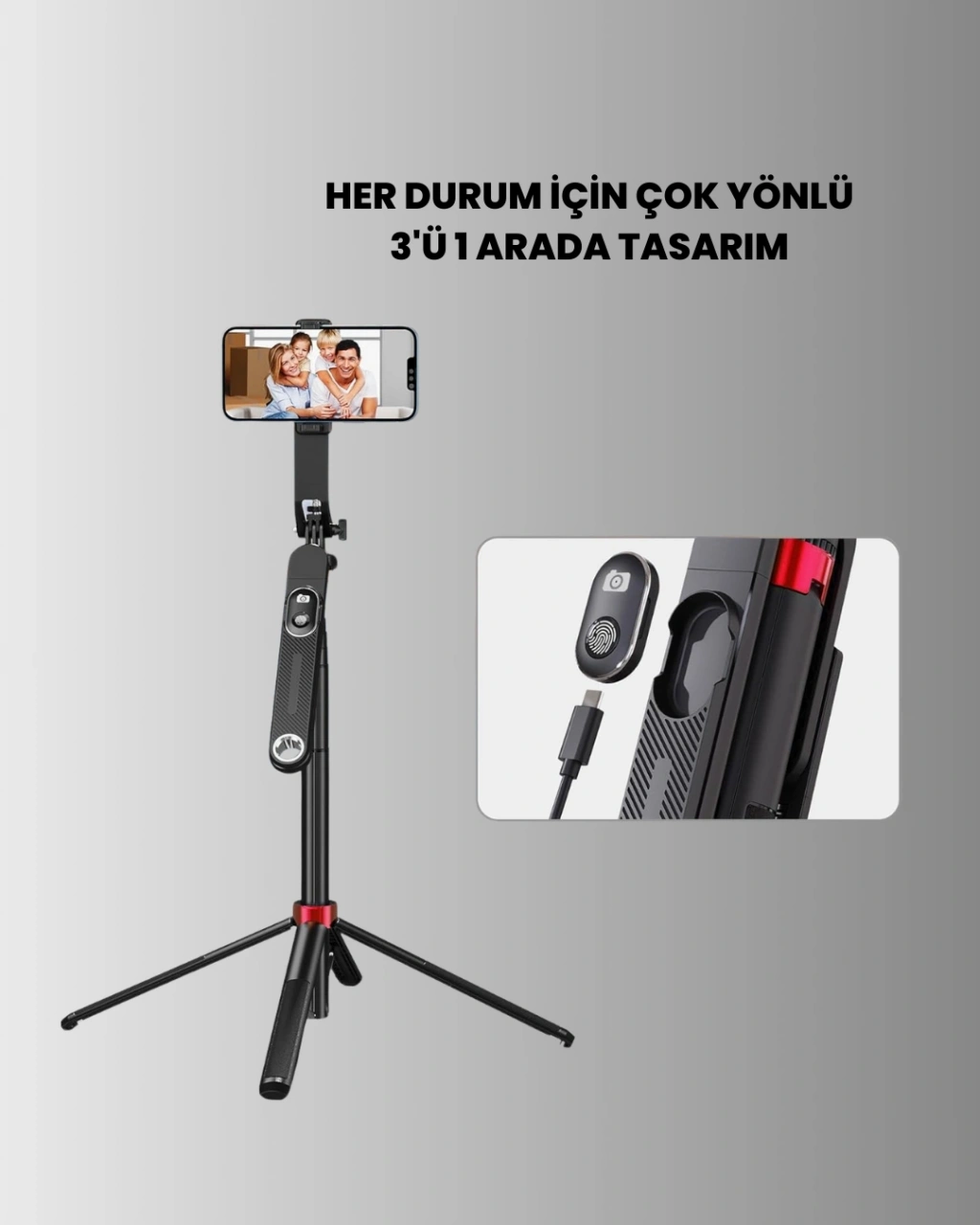 Tripod ve selfie çubuğu bir arada sunan bu ürün, çok yönlü kullanım imkânı ile dikkat çeker. Selfie çekimlerinden sabit video kayıtlarına kadar geniş bir kullanım alanına sahiptir. Uzatılabilir yapısı sayesinde farklı açılardan çekim yapılmasına olanak tanır.Tripod ayakları açıldığında dengeli bir zemin oluşturur ve sabit çekimler için ideal bir yapı sunar. Telefon tutucu kısmı ayarlanabilir olup dikey ve yatay çekimleri destekler. Bu özellik özellikle sosyal medya içerik üreticileri ve canlı yayın yapanlar için büyük avantaj sağlar.Uzaktan kumanda ile çekim yapılabilmesi, kullanıcıya zaman kazandırır ve daha rahat pozlar yakalanmasını sağlar. Canlı yayınlar, vlog çekimleri ve görüntülü görüşmeler sırasında pratik kullanım sunar.Taşınabilir ve hafif yapısı sayesinde her yere kolayca taşınabilir. Kurulumu hızlıdır ve ek bir aparat gerektirmez. Dayanıklı gövde yapısı uzun süreli kullanım için uygundur.Tripodlu selfie stick, fotoğraf ve video çekimlerini daha kaliteli hale getirmek isteyen herkes için kullanışlı bir üründür. Hem günlük kullanım hem de profesyonel içerik üretimi için tercih edilebilir.