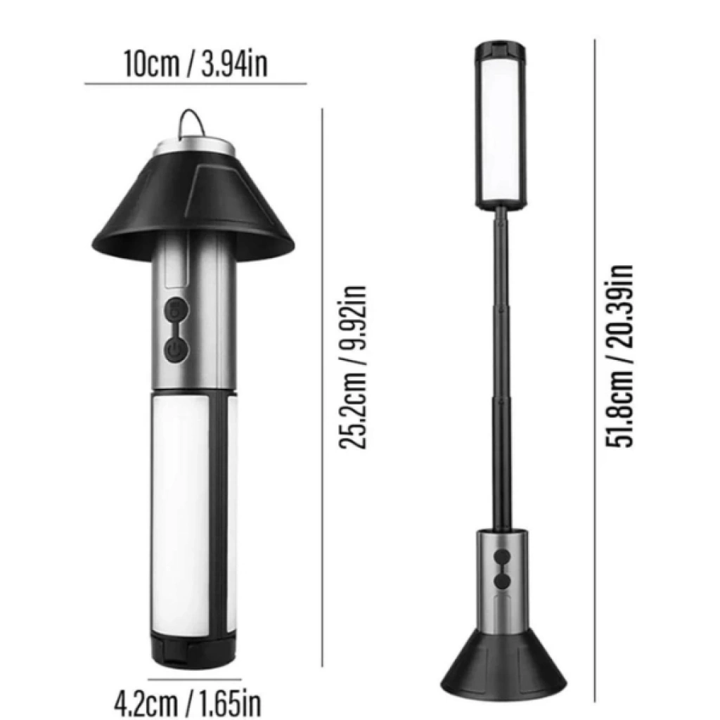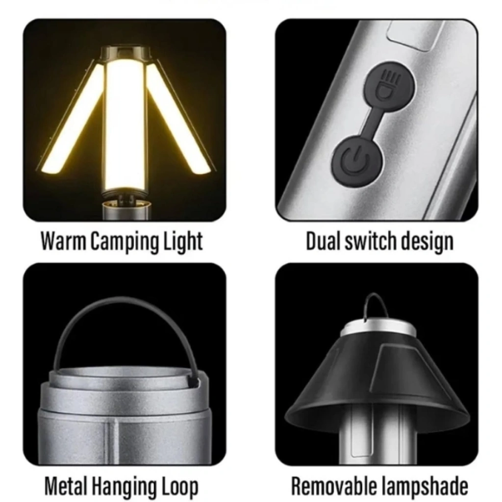 Teleskopik şarj edilebilir çadır kamp ışığı, kamp, doğa yürüyüşü ve açık hava aktivitelerinde güvenilir aydınlatma sunmak üzere tasarlanmış çok işlevli bir üründür. Birinci sınıf ABS ve PVC malzemelerden üretilen gövdesi, zorlu dış ortam koşullarına karşı dayanıklılık sağlarken hafif yapısıyla kolay taşınabilirlik sunar. Teleskopik yapısı sayesinde el feneri, masa lambası ve zemin lambası olarak kullanılabilen ürün, farklı ihtiyaçlara hızlıca uyum sağlar. Sahip olduğu 270 derece ayarlanabilir lamba kanatları, yumuşak ve homojen ışık dağılımı sağlayarak gece okumaları ve geniş alan aydınlatmaları için idealdir. Yakınlaştırılabilir el feneri modu ile hem yakın hem de uzak mesafelerde etkili görüş sunar. Dahili gizli kanca detayı sayesinde çadırlara veya ağaç dallarına kolayca asılabilir. Type-C hızlı şarj arayüzü ile pratik şarj imkânı sunan bu model, şarj edilebilir kamp ışığı arayanlar için fonksiyonel ve uzun ömürlü bir çözümdür. Ürün Teknik Özellikleri Özellik Açıklama Ürün Adı Teleskopik Şarj Edilebilir Çadır Kamp Işığı Malzeme Birinci sınıf ABS ve PVC Aydınlatma Modu El feneri, masa lambası, zemin lambası Ayarlanabilirlik 270° ayarlanabilir lamba kanatları Direk Yapısı 4 bölümlü teleskopik uzatma Şarj Girişi Type-C hızlı şarj Dayanıklılık Toza ve su sıçramasına dayanıklı Kullanım Alanı Kamp, çadır, açık hava, acil durum Paket İçeriği1 adet teleskopik şarj edilebilir çadır kamp ışığı
