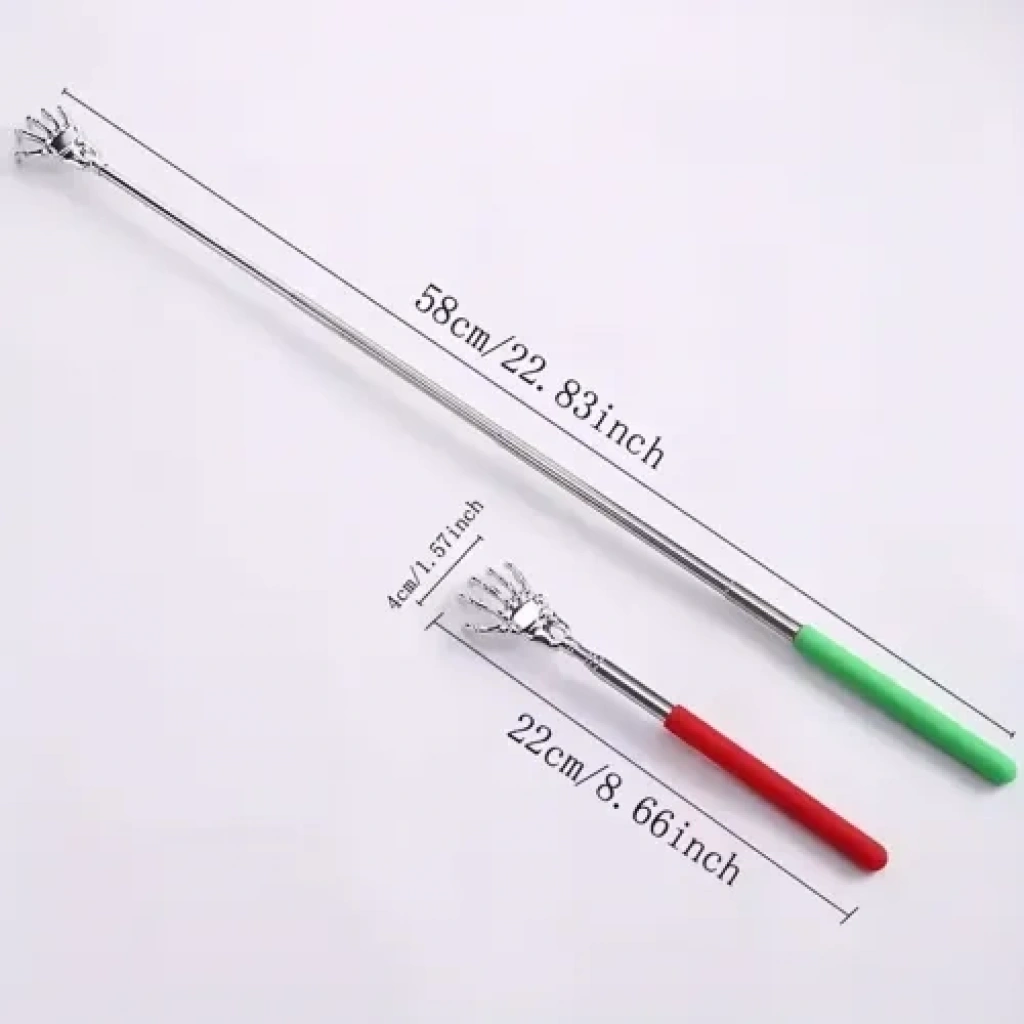 Teleskopik Sırt Kaşıyıcı: 58 cm Ulaşım Mesafesiyle Kaşıntıya Son!Ulaşılmaz kaşıntı noktalarına anında çözüm! Bu pratik Teleskopik Sırt Kaşıyıcı, kapalıyken sadece 22 cm iken, açıldığında tam 58 cm uzunluğa erişir. El şeklindeki kaşıma ucu sayesinde sırtınızın en zorlu bölgelerine bile kolayca ulaşarak size anında rahatlama sağlar. Paslanmaz metal gövdesi ve renkli, ergonomik tutma yerleriyle uzun ömürlü ve eğlenceli bir pratik gereçtir.✨ Temel ÖzelliklerFonksiyon: Teleskopik (Kademeli olarak uzayıp kısalır).Boyutlar: Kapalı: 22 cm, Açık: 58 cm (Maksimum ulaşım mesafesi).Tasarım: El şekilli kaşıma ucu (Etkili ve rahat kaşıma yüzeyi).Malzeme: Dayanıklı metal/çelik gövde ve ergonomik, renkli plastik/silikon tutma kolu.Renk: Karışık olarak gönderilir (Stok çeşitliliği).Pil: Pil gerektirmez (Mekanik).