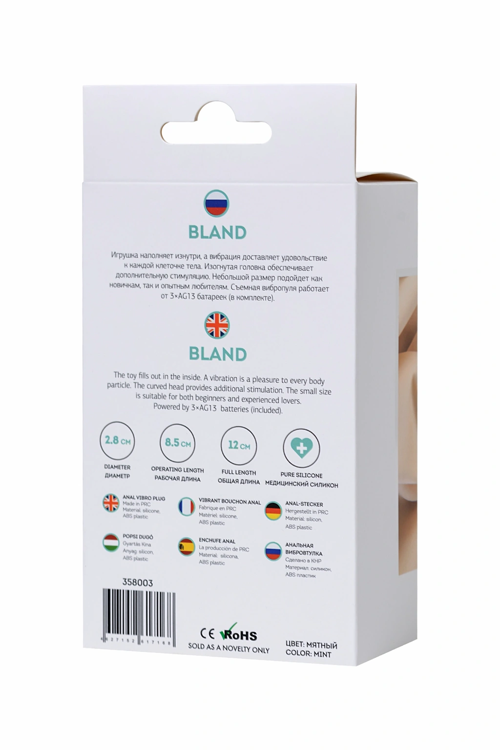 Bland Oyuncak içeriden doldurur ve titreşim vücudun her hücresine zevk verir. Kavisli kafa ek stimülasyon sağlar. Küçük boyut hem yeni başlayanlar hem de deneyimli amatörler için uygundur. Çıkarılabilir titreşim çubuğu 3×AG13 pille çalışır (dahil).