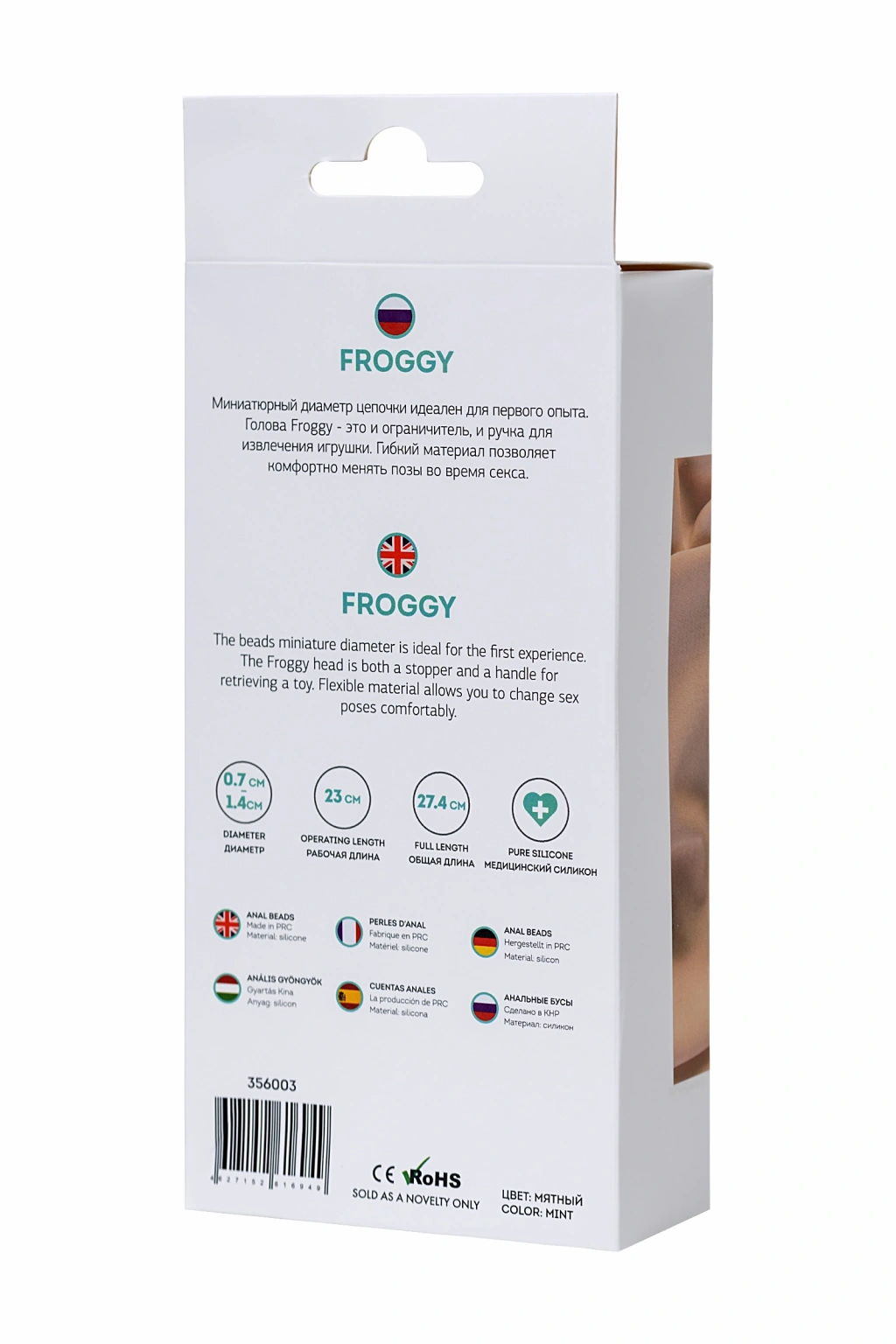 FroggyMinyatür zincir çapı ilk deneyiminiz için idealdir. Froggy'nin başı hem bir durdurucu hem de oyuncağı çıkarmak için bir tutamaktır. Esnek malzeme, seks sırasında pozları rahatça değiştirmenizi sağlar.