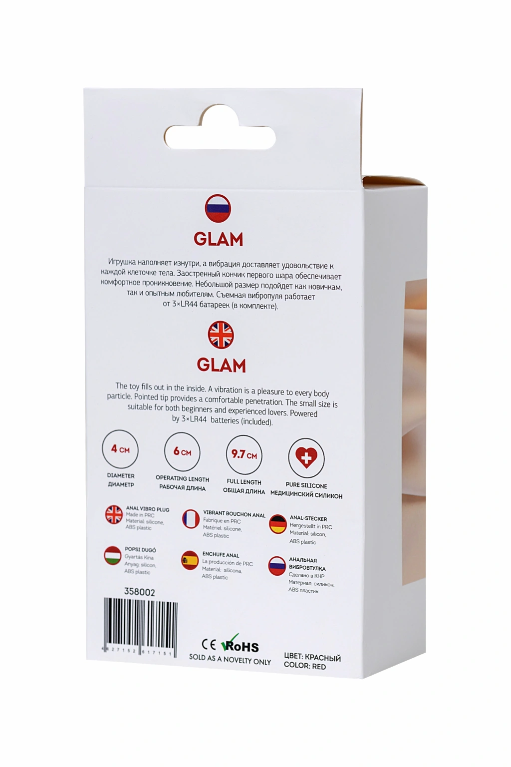 Glam Oyuncak içeriden doldurur ve titreşim vücudun her hücresine zevk verir. İlk topun sivri ucu rahat penetrasyon sağlar. Küçük boyut hem yeni başlayanlar hem de deneyimli amatörler için uygundur. Çıkarılabilir titreşim çubuğu 3×LR44 pille çalışır (dahil).