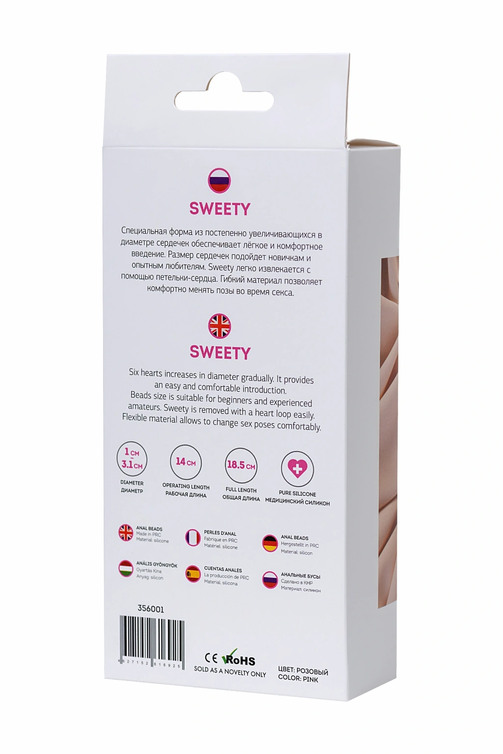 Sweety Çap olarak kademeli olarak artan kalplerin özel şekli kolay ve rahat bir giriş sağlar.Kalplerin büyüklüğü yeni başlayanlar ve deneyimli sevenler için uygundur. Sweety, kalp döngüsüyle kolayca çıkarılır. Esnek malzeme, seks sırasında pozları rahatça değiştirmenizi sağlar.